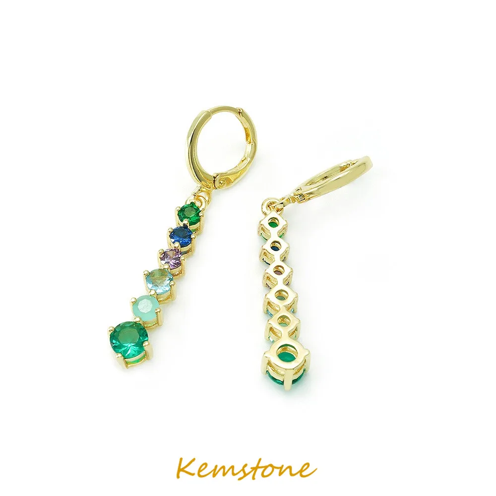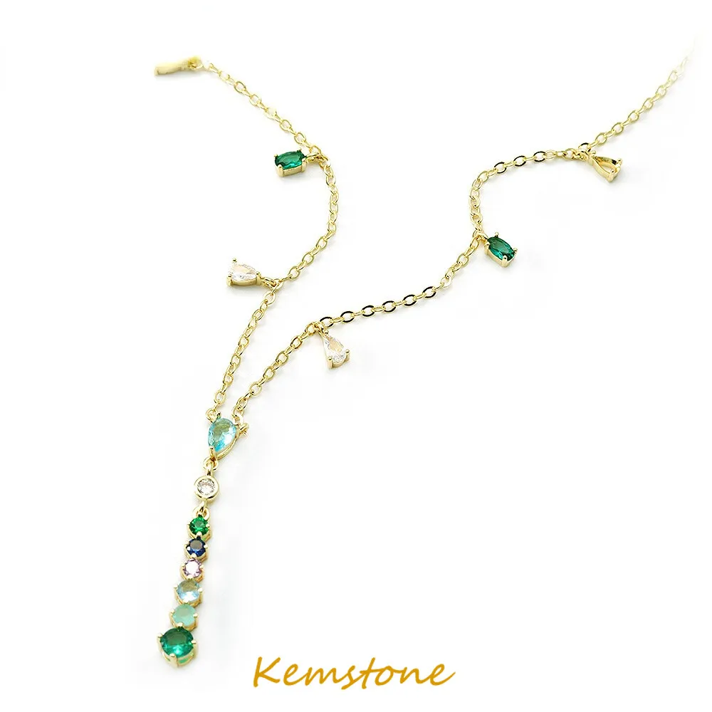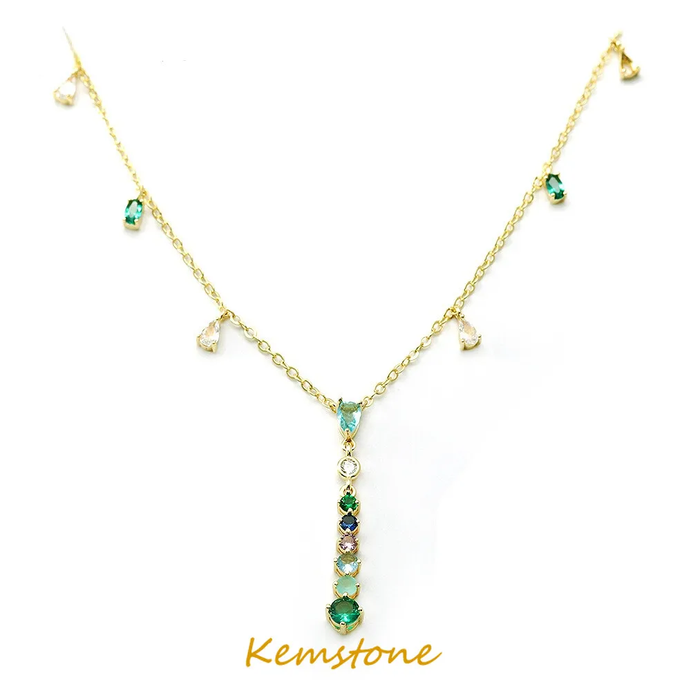 Роскошные яркие серьги Kemstone с зеленым кристаллом и цирконом, подвеска, позолоченное ожерелье, набор украшений для женщин Gift