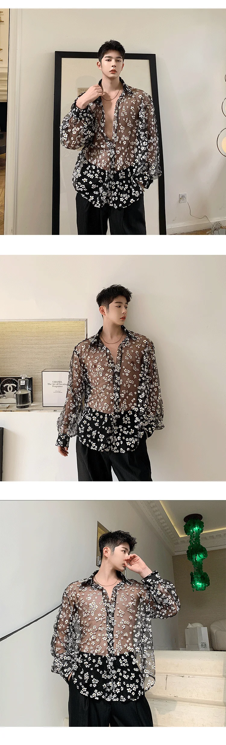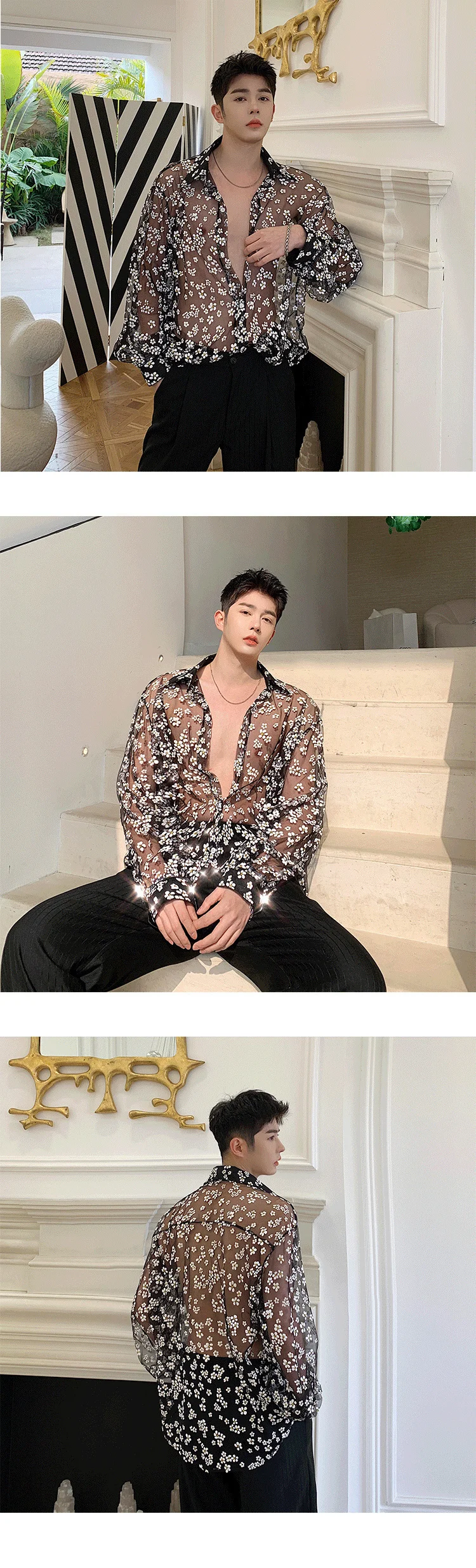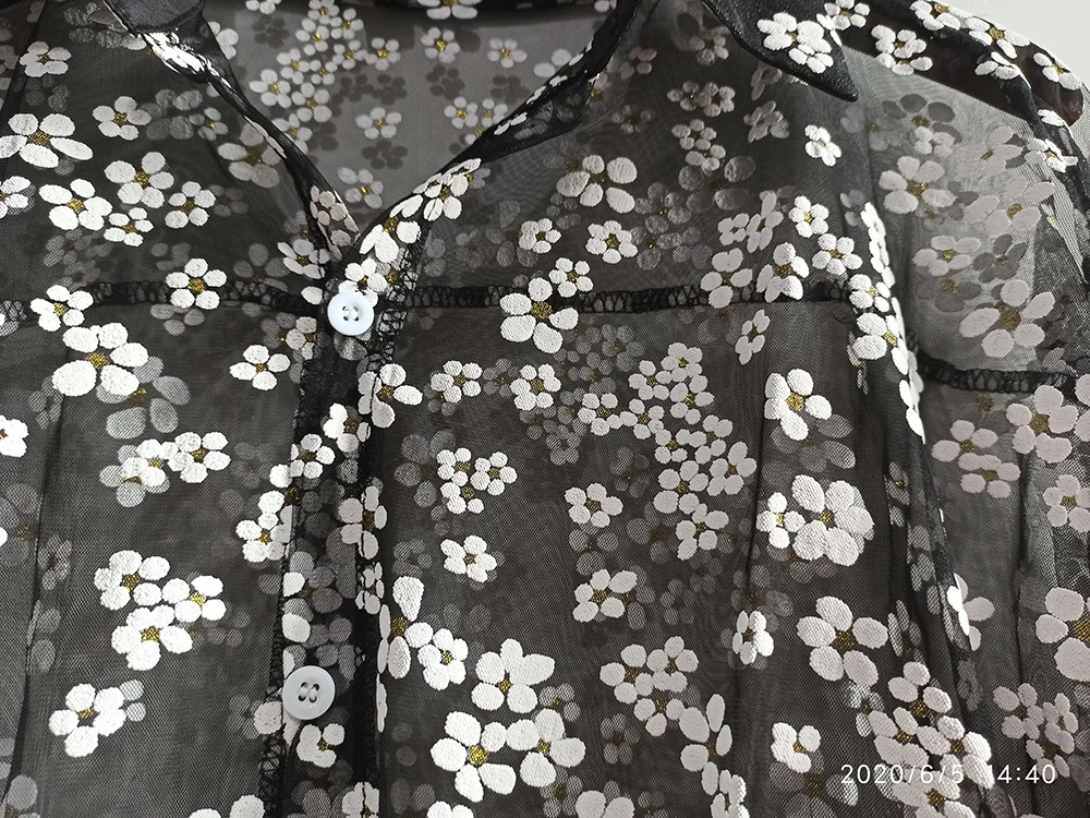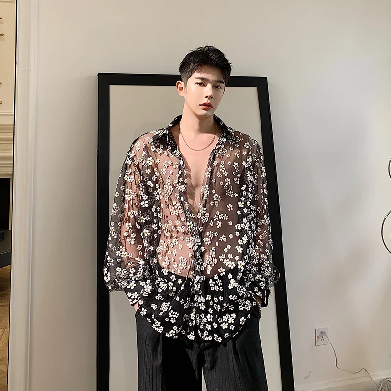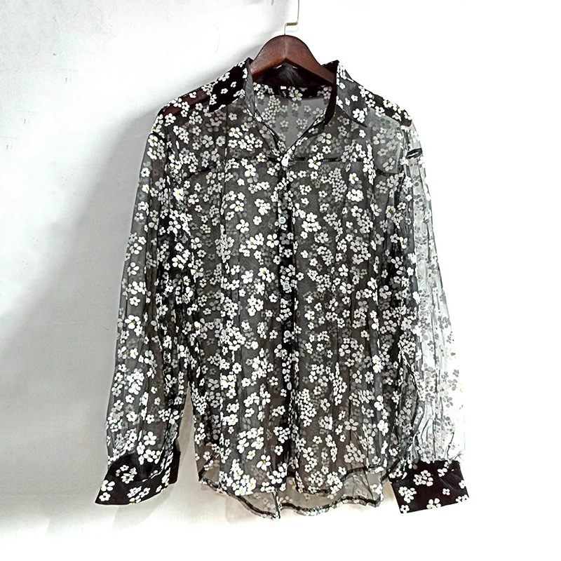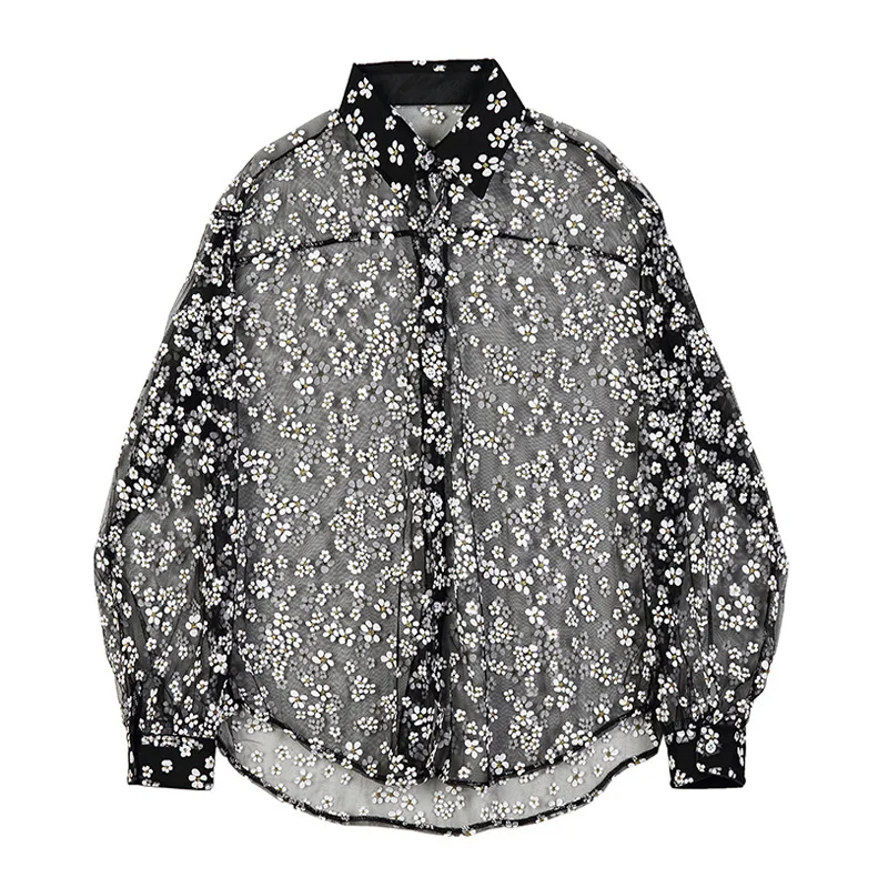 IEFB одежда унисекс, прозрачная Солнцезащитная одежда с вырезами, газовая черная рубашка с длинным рукавом и принтом, новинка 2022, блузка с отворотом 9Y1388