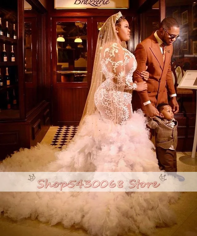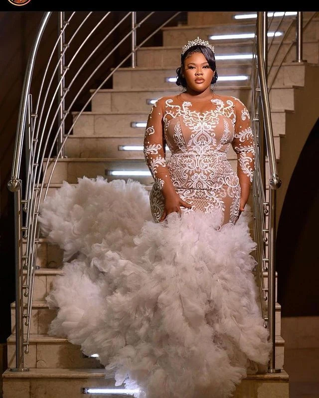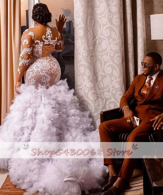 Женское платье невесты, длинное Привлекательное платье с кружевной аппликацией и бисером