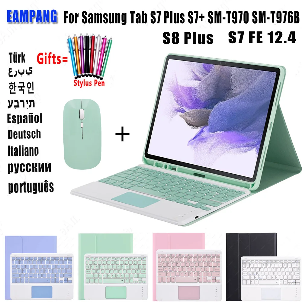 Клавиатура с чехлом для Samsung Tab S8, S7 Plus, SM-T970 T975, S7 + FE 12,4, T730, T735, S8 +, X800, X806, русская, Арабская, испанская, Корейская клавиатура