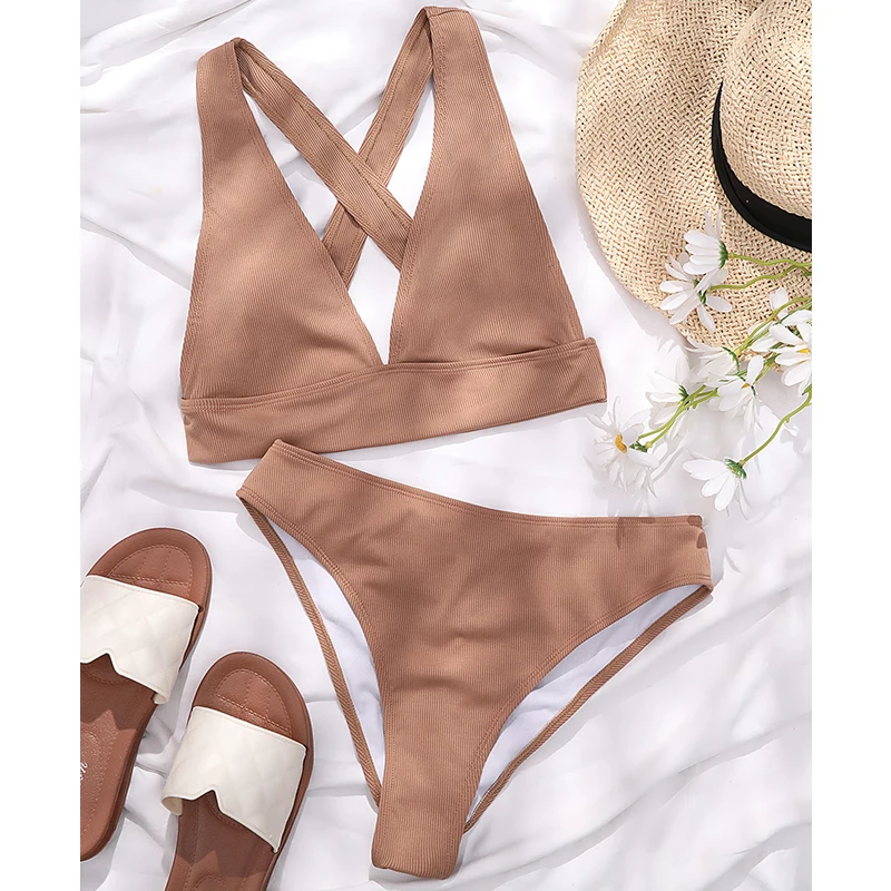 2021, бикини с одним плечом, бандо, набор, однотонный, ребристый ку...