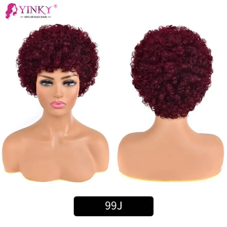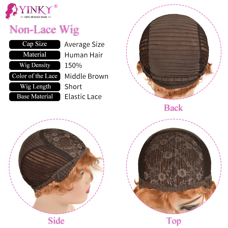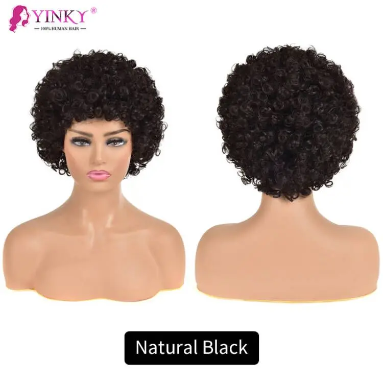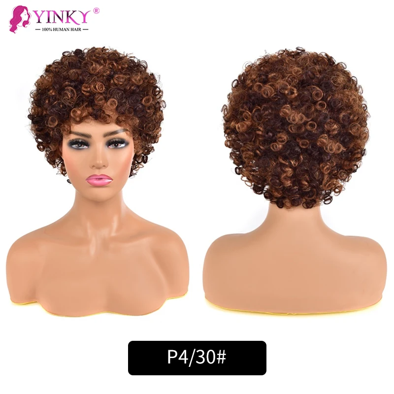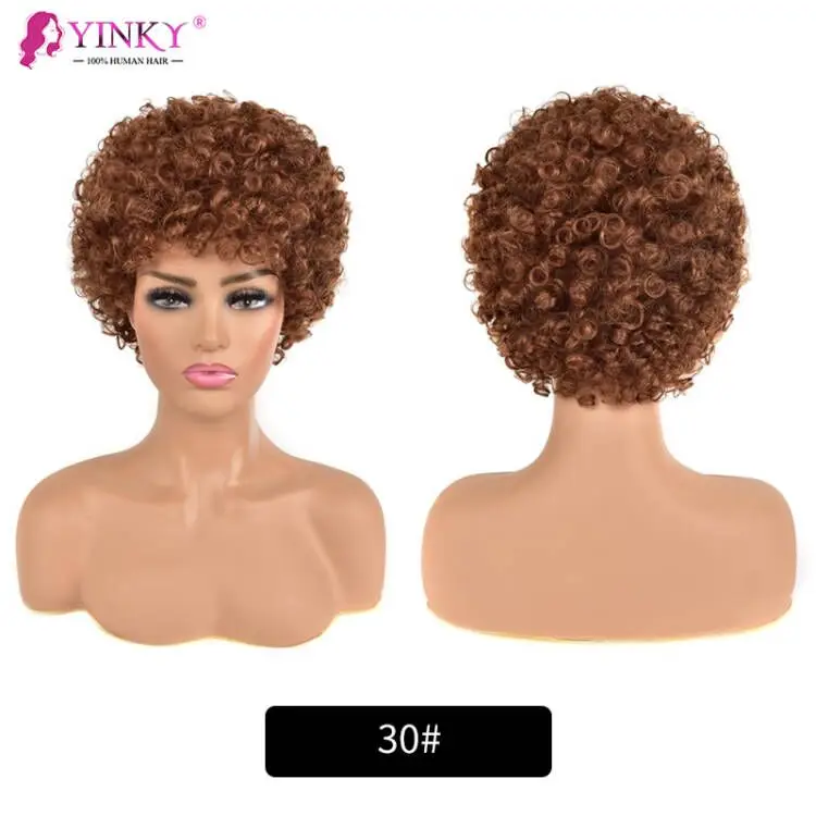 Недорогие парики из человеческих волос под искусственными волосами, Короткие вьющиеся человеческие волосы афро-волнистые, парики для женщин, парик с вырезанными волосами имбиря, парик из человеческих волос