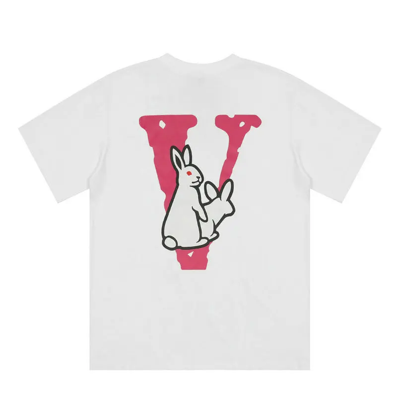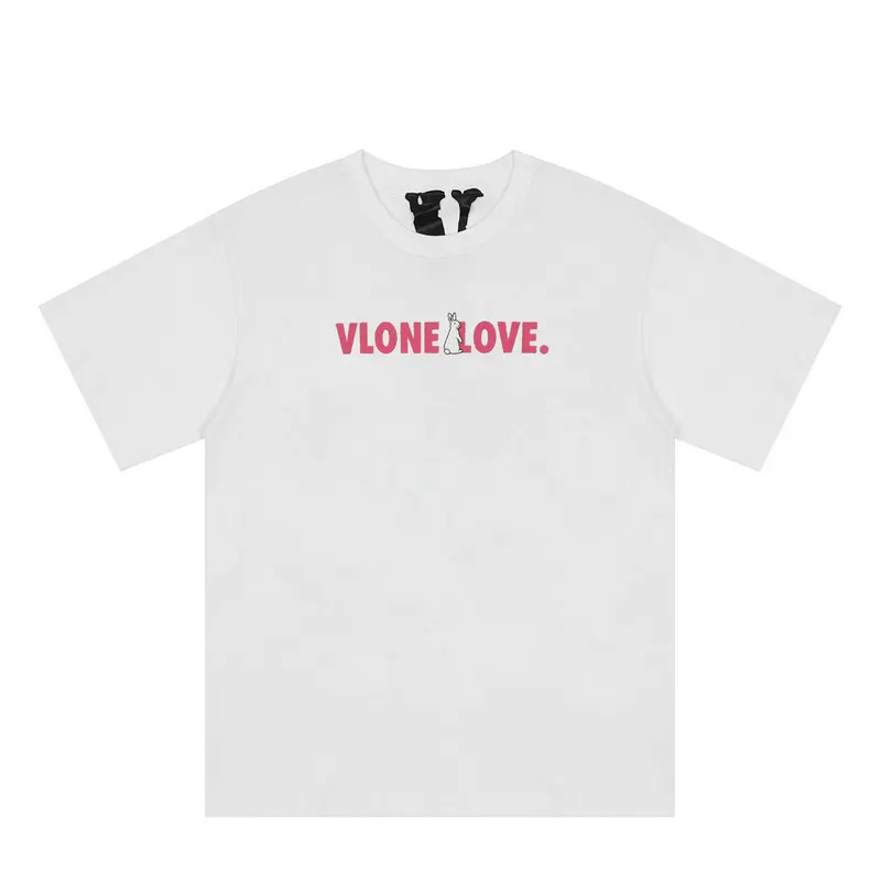 Футболка VLONE Мужскаяженская из натурального хлопка, брендовая уличная одежда из 100% хлопка, летняя рубашка в стиле хип-хоп с коротким рукавом и принтом кролика