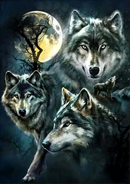 5D со стразами идеально сочетаются с картиной punto de Крус Lobo со...