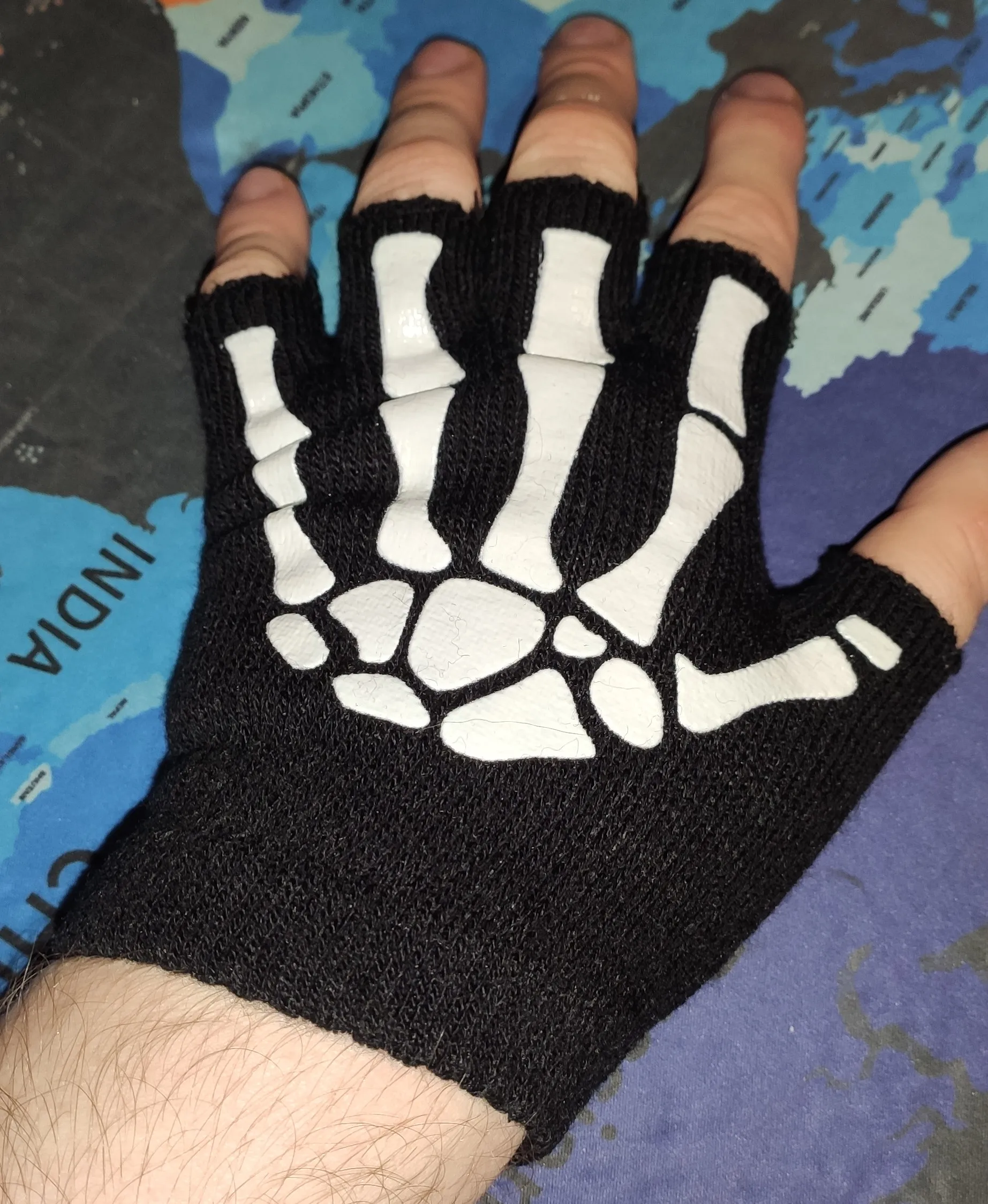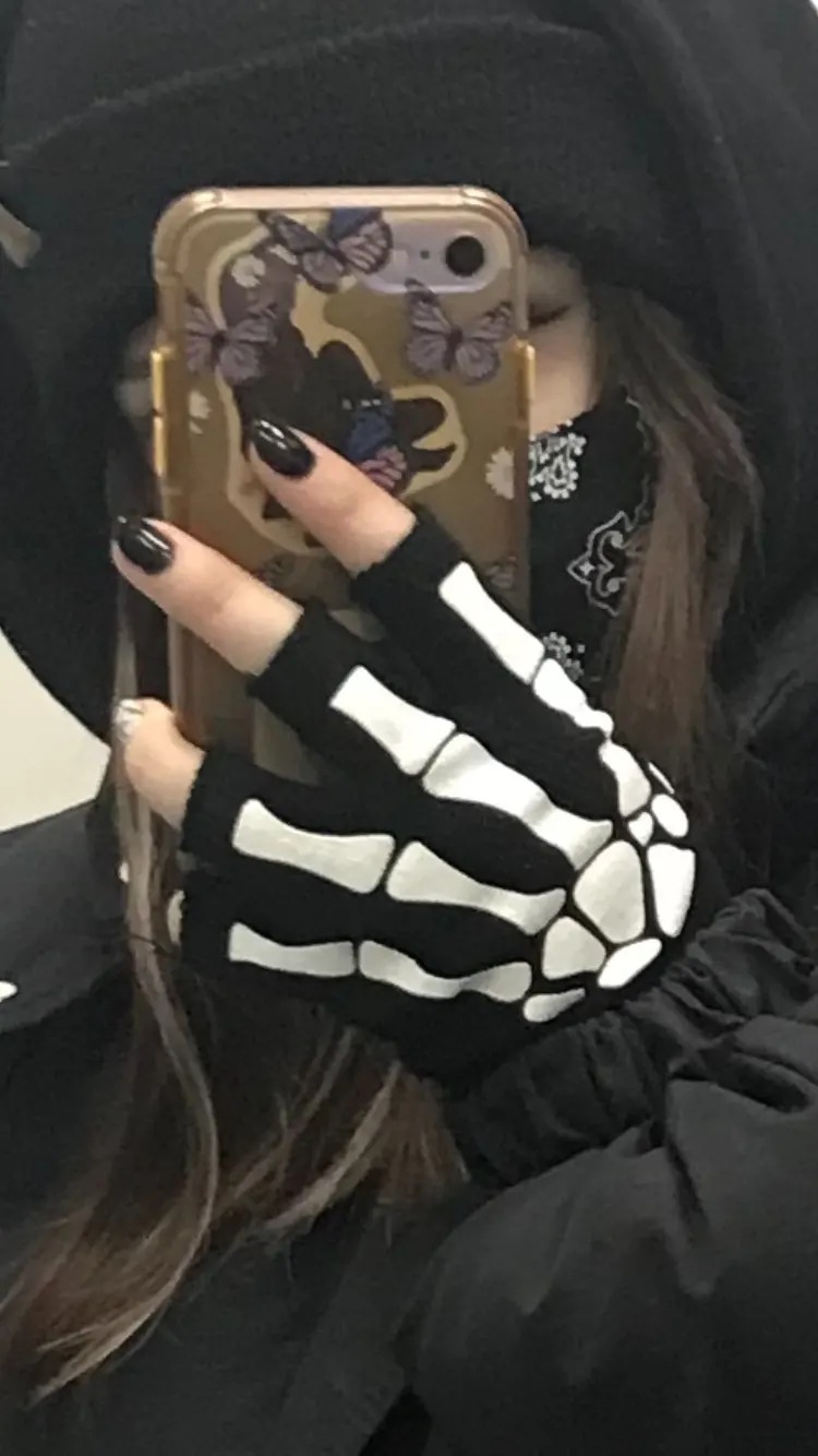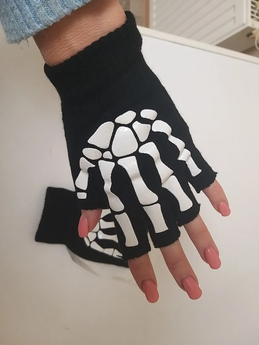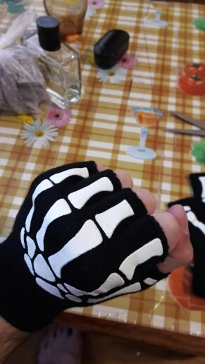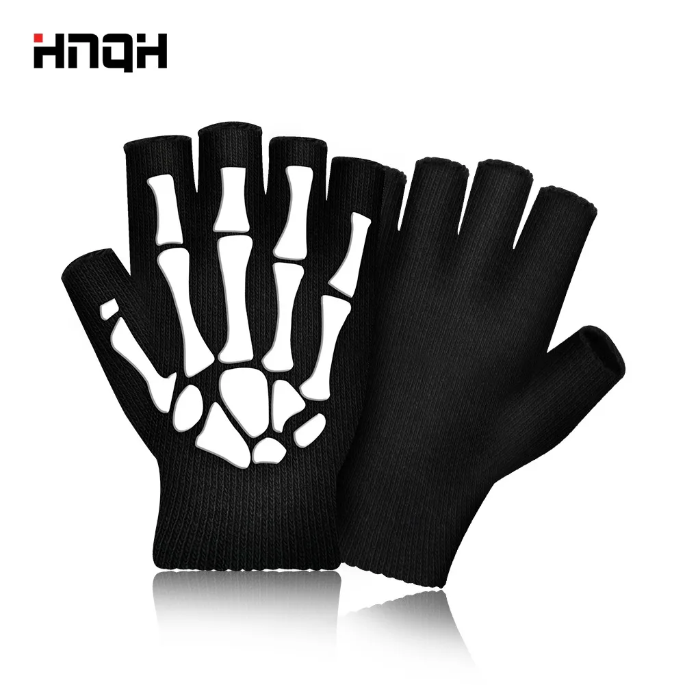 Теплые вязаные перчатки HNQH для взрослых, однотонные акриловые перчатки на полпальца, перчатки с принтом головы скелета человека, велосипедные Нескользящие перчатки на запястье
