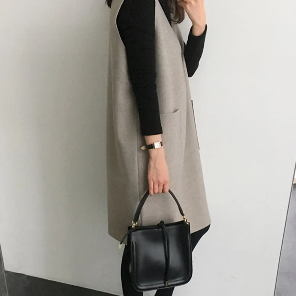 Женское Короткое платье-жилет без рукавов, осенне-зимние свободные ...