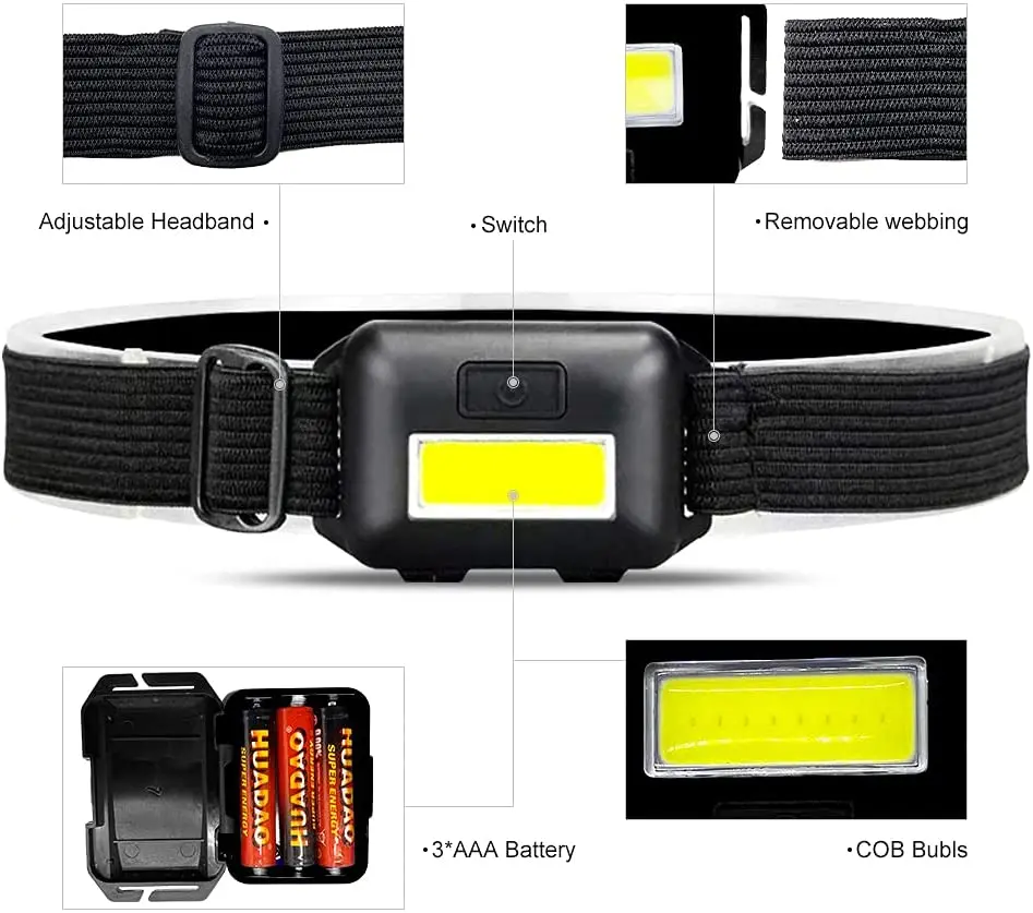 Светодиодный COB налобный фонарь с широким пучком освещения 210 ° ультра-низкий профиль 3 режима ow энергопотребление с перезаряжаемой встроенной батареей