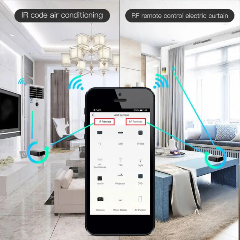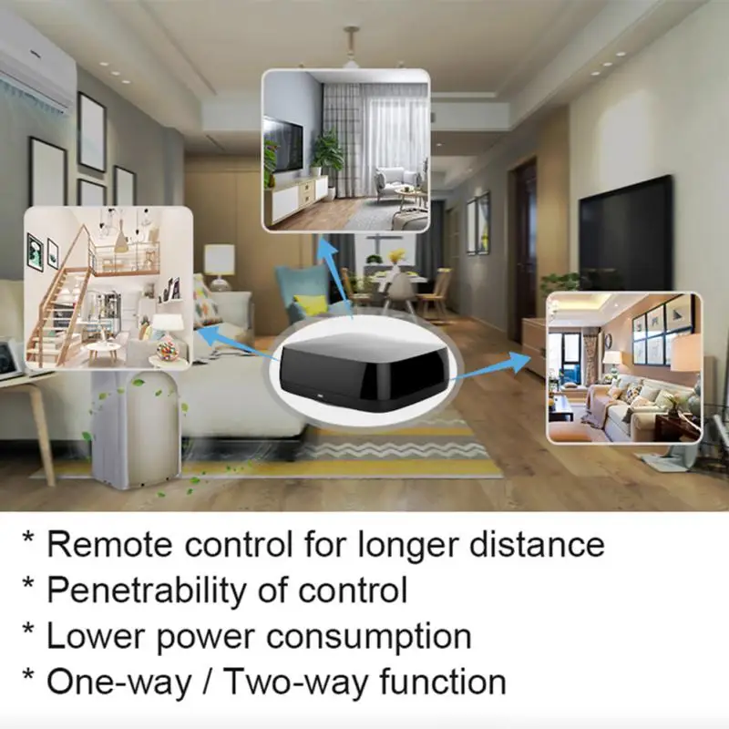 2. Радиочастотный протокол с несколькими пультами дистанционного управления обеспечивает лучший пользовательский опыт для управления различными радиочастотными устройствами 433 МГц в качестве мотора занавесок, переключателя на светильник; Локальный ИК-код для более быстрого ответа.