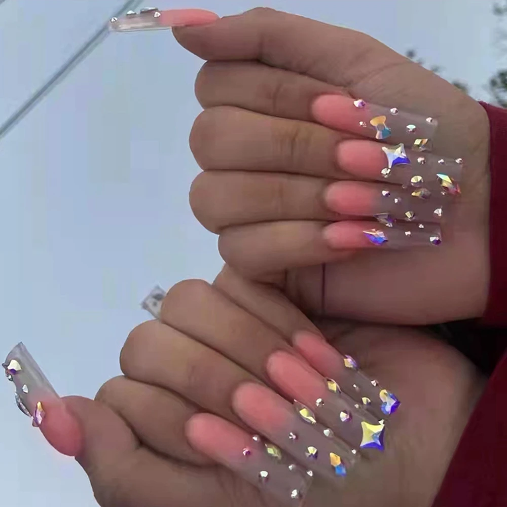 24 шт. длинные гробные накладные ногти Европейская Звезда розовый градиент балерина дизайн ногтей полный наконечник с клеем, стикер съемные накладные ногти