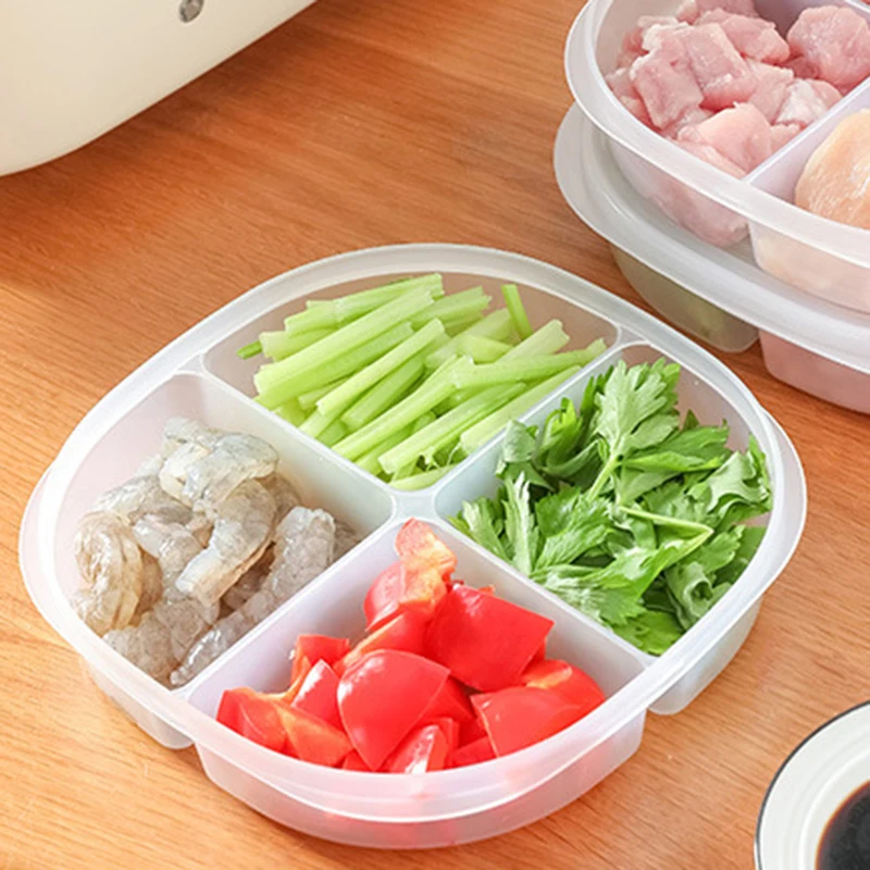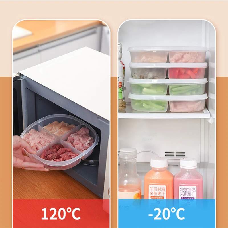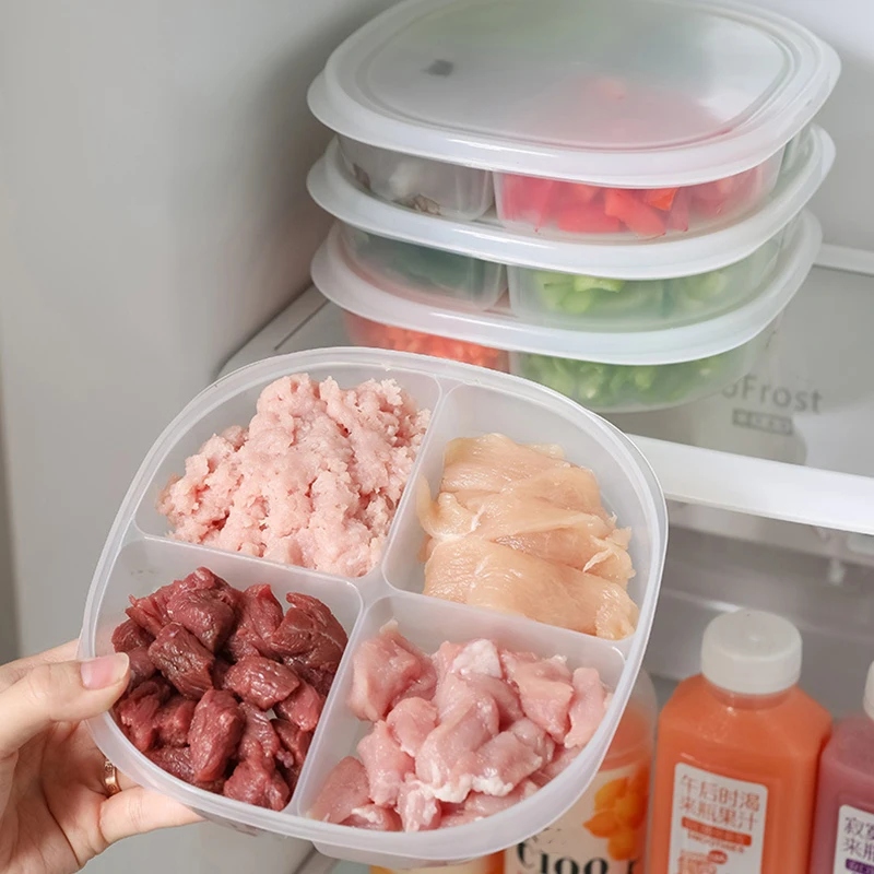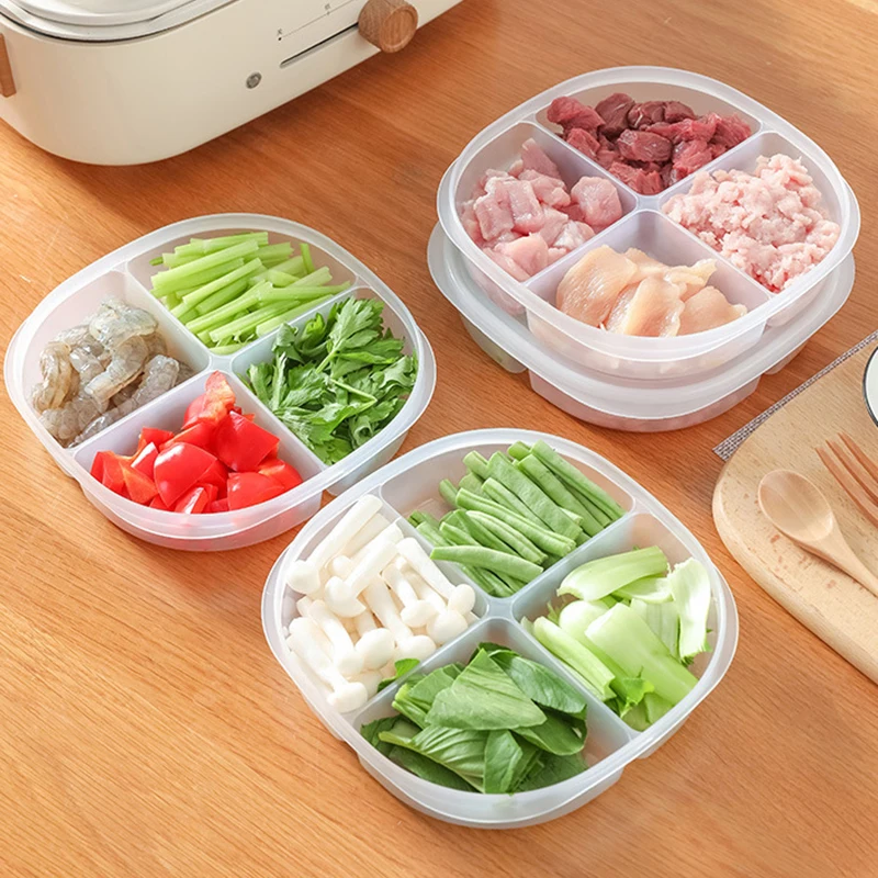 Новый Контейнер для хранения пищевых продуктов из полипропилена с крышкой, 4 ячейки, контейнер для хранения пищевых продуктов большой емкости, прозрачный контейнер для сохранения свежести на кухне, для приготовления пищи