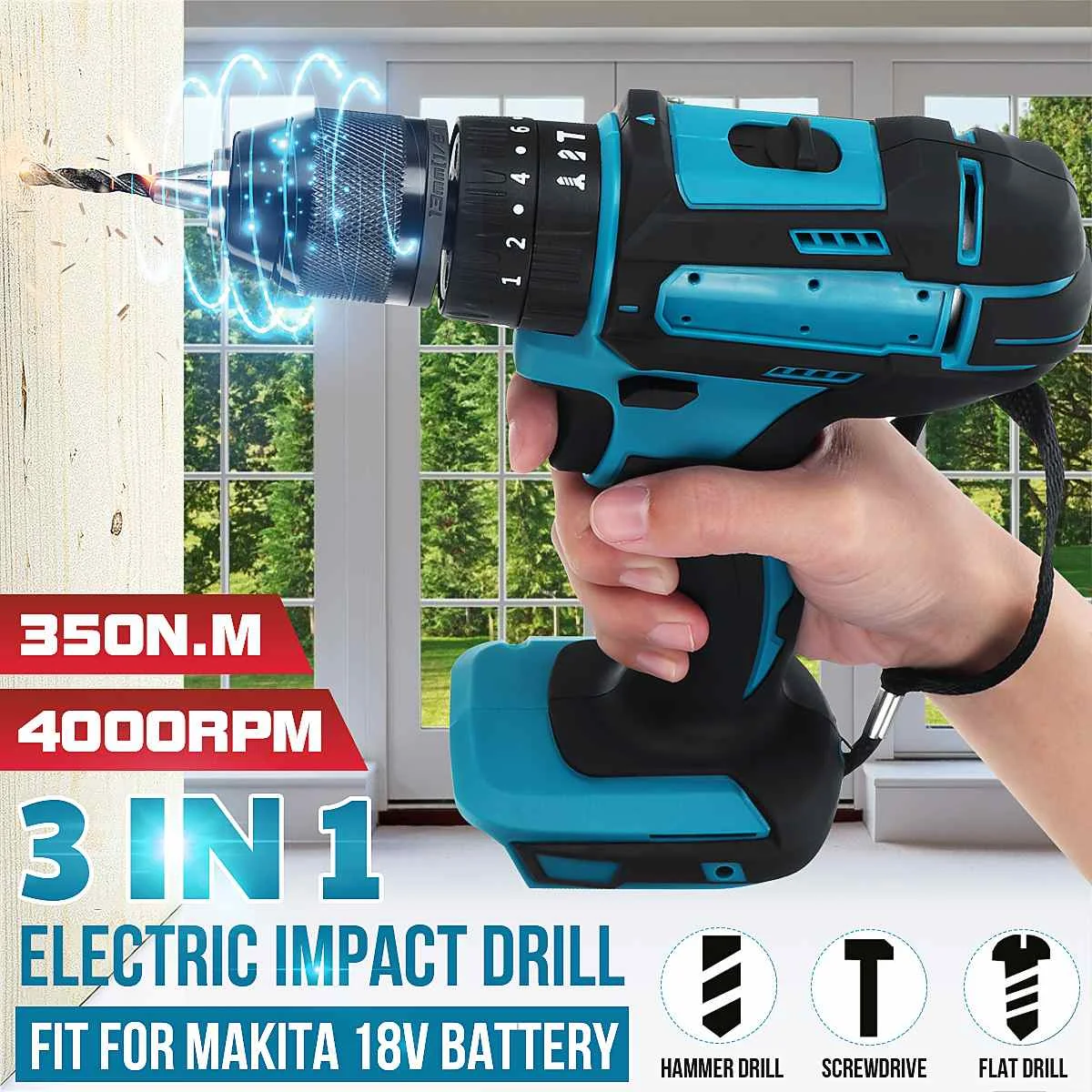 Ударная дрель с патроном 10 мм, 4000 Н м, Беспроводная электрическая дрель для Makita, батарея 18 в, обмин, мощные сверла светодиодный светильник кой