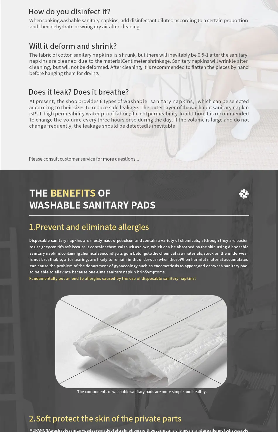 Название бренда: Mora MonaМатериал:Внешний материал: 1 слой мягкий ПУЛ ВодонепроницаемыйСредний Материал: 1 слой микрофибрыВнутренний материал: 1 слой бамбукового угляЦвет: много модных принтов на выборХарактеристики: водонепроницаемый и супер абсорбирующий; Моющийся и многоразовыйРазмер: 30 см x 18 смФорма: КрылатаяНаш продукт-это охрана здоровья и окружающей среды.