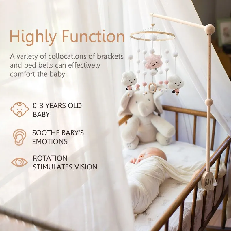 1 комплект, детская кровать, колокольчик, мобильные погремушки, игрушки для малышей 0-12 месяцев, деревянный мобильный телефон на кровати, музыкальная шкатулка для новорожденных, подвесные игрушки, Товары для малышей