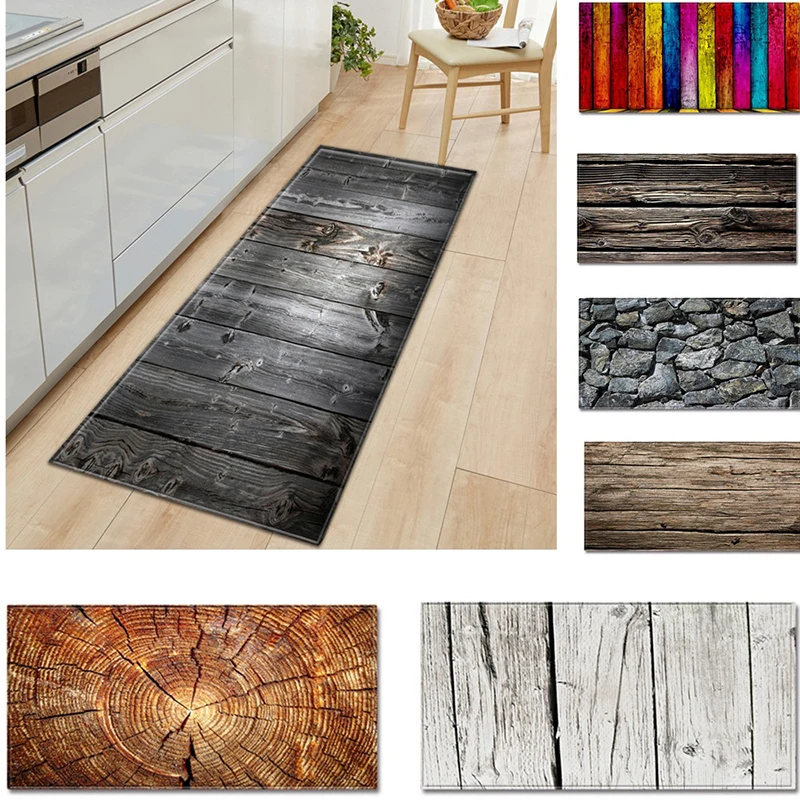Модный простой ковер с рисунком под дерево, кухонный напольный коврик, домашний ковер, нескользящий длинный полосатый дверной коврик, Современный домашний декор