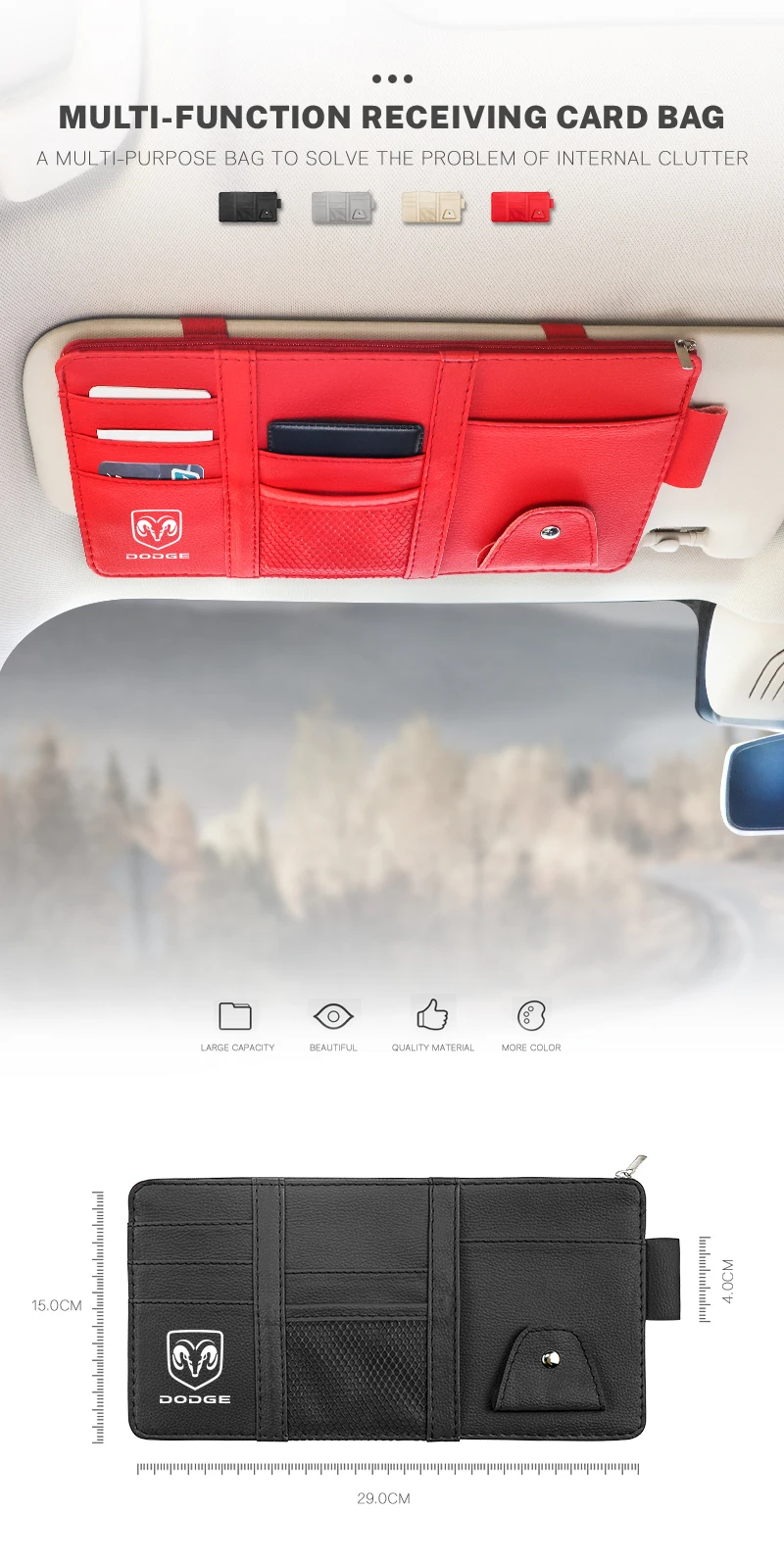 Стайлинг логотипа автомобиля солнцезащитный козырек зажим для очков кожаная сумка для хранения карт для Dodge Caravan Ram 1500 Калибр нитро путешествие Мститель Дротика