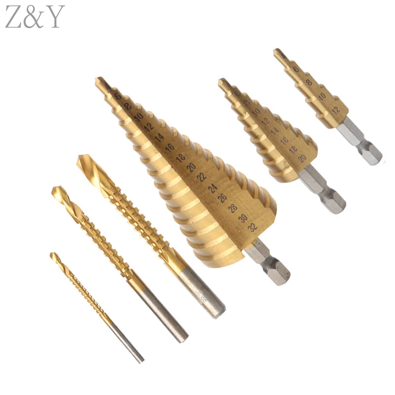 Ступенчатое сверло и сверло, фреза, 6 шт.компл., зенкер для металладревесины, металлический конус 32 мм, сценическое освещение