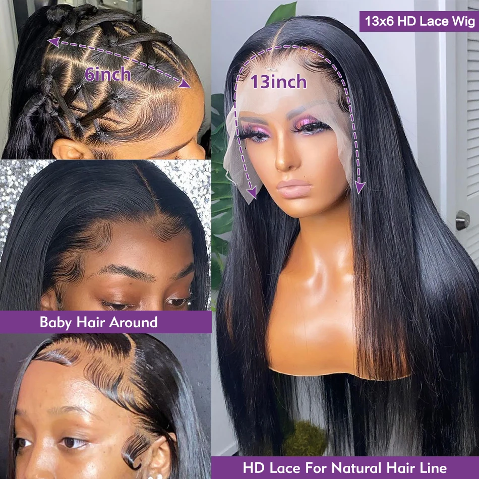 Парик из натуральных человеческих волос, 3032 дюйма, 13x413x6