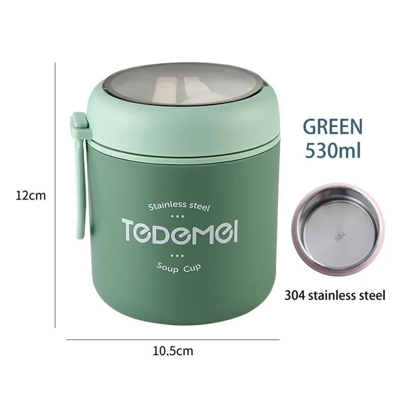 Название: чашка для супа из нержавеющей сталиРазмеры: 12*10,5 смЦвет: мятно-зеленый, порошок грейпфрутаЕмкость: 500 млМатериал: нержавеющая сталь 304 + ППСтиль: большая чашка для животаПосылка включает в себя:1 * Изолированный Ланч-бокс1 * ложкаОсобенности:1. Сохраняет тепло и холод, может быть установлен с водой для сохранения тепла2. Герметичный, герметичный, Теплоизоляционный и противоскользящий3. Выпускной клапан можно вставить в солому и использовать в качестве стакана воды4. Отдельный дизайн, можно использовать в качестве двух чашек5. Подходит для приготовления молока, приготовления кофе, питьевой воды, питательного супа и т. д.6. Крючок и ручка, легко носить с собой