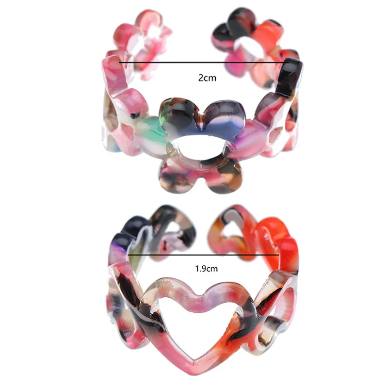 Акриловые полые кольца имеют небольшие формы цветов и сердечки, каждая из которых имеет свои особенности, и все они очень тонкие и красивые.