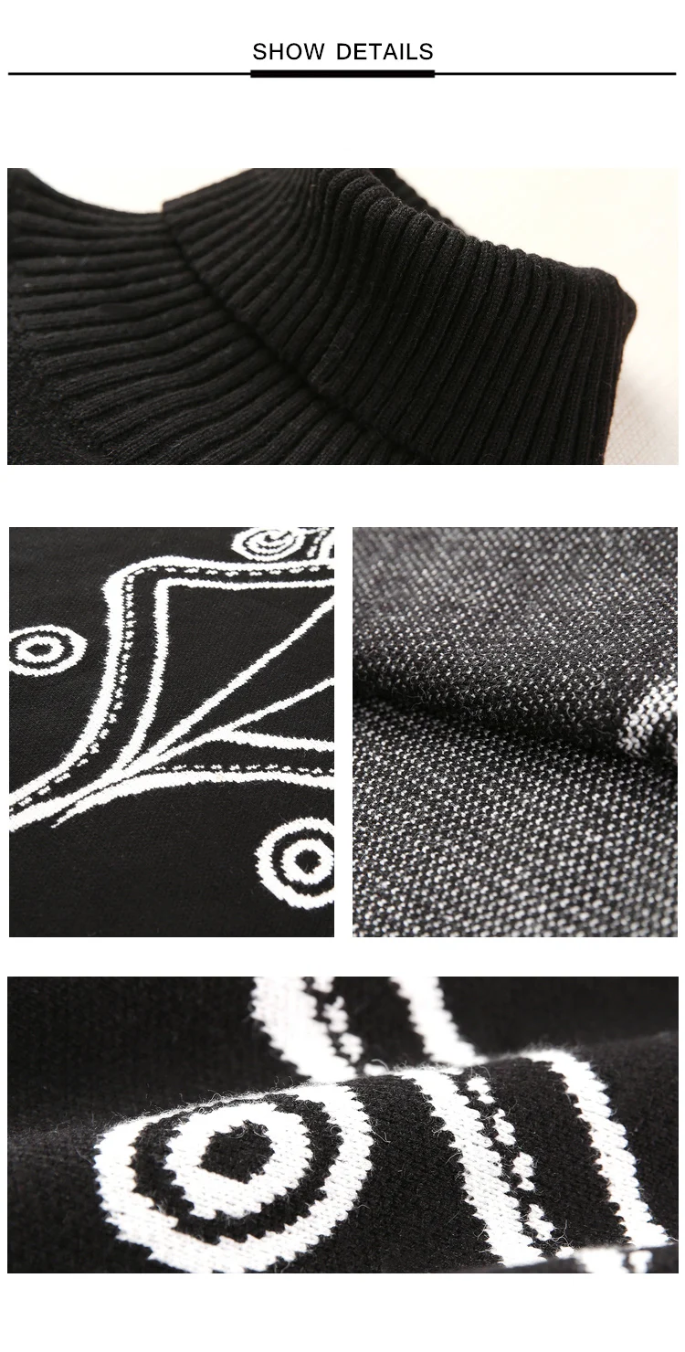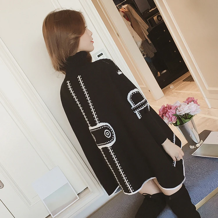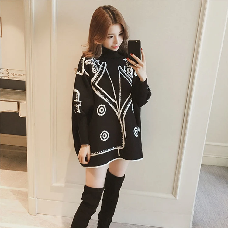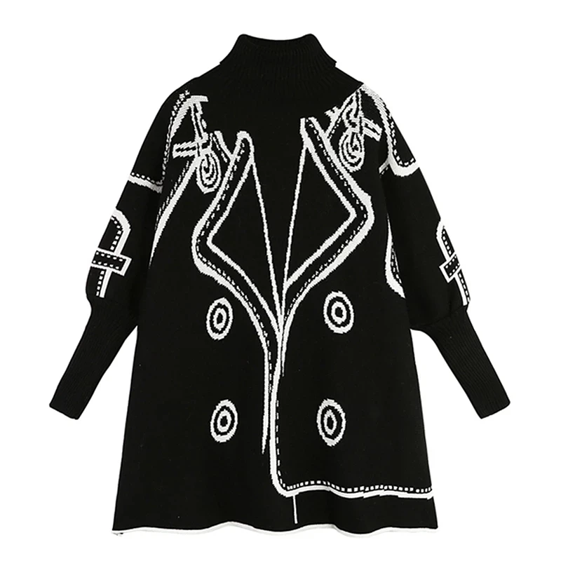 Женский вязаный свитер с узором, Свободный пуловер с высоким воротн...