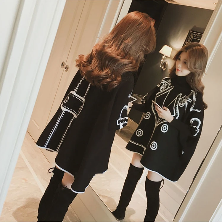 Женский вязаный свитер с рукавом летучая мышь, Свободный пуловер оверсайз с высоким воротником, одежда в Корейском стиле на осень и зиму, 2021