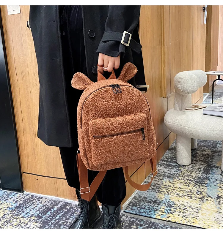 Рюкзак с мультяшными кроличьими ушками, пушистая плюшевая школьная сумка с ушками кролика, плюшевая сумка через плечо на молнии для женщин и девочек