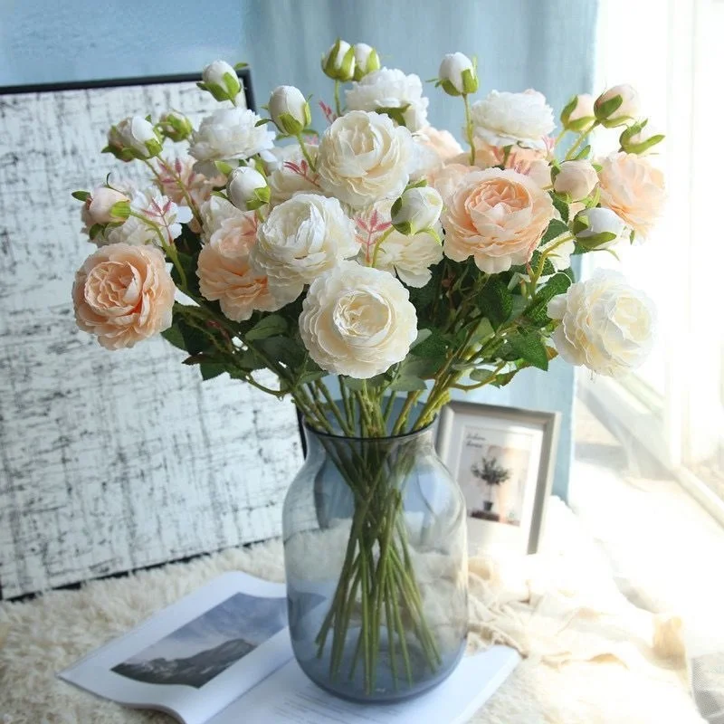 YO CHO розы Искусственные цветы 3 головы розовые Белые пионы Шелков...