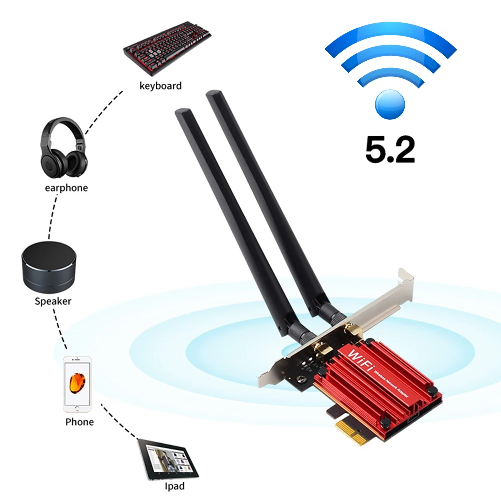 Wi-Fi 6 Bluetooth совместимым 5,2 адаптер PCI-E PC Dual Band 2,4G + 5G игровая сетевая карта настольный компьютер 6dBi 1800Mbps Беспроводной аксессуар