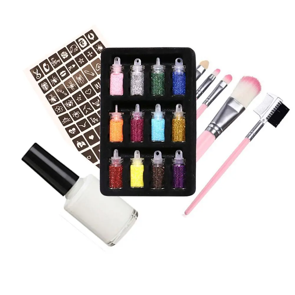 Набор блестящих алмазных татуировок, 12 цветов, 63 дюйма, Временные татуировки, шаблоны для детей, искусство, набор инструментов, наклейки для ногтей