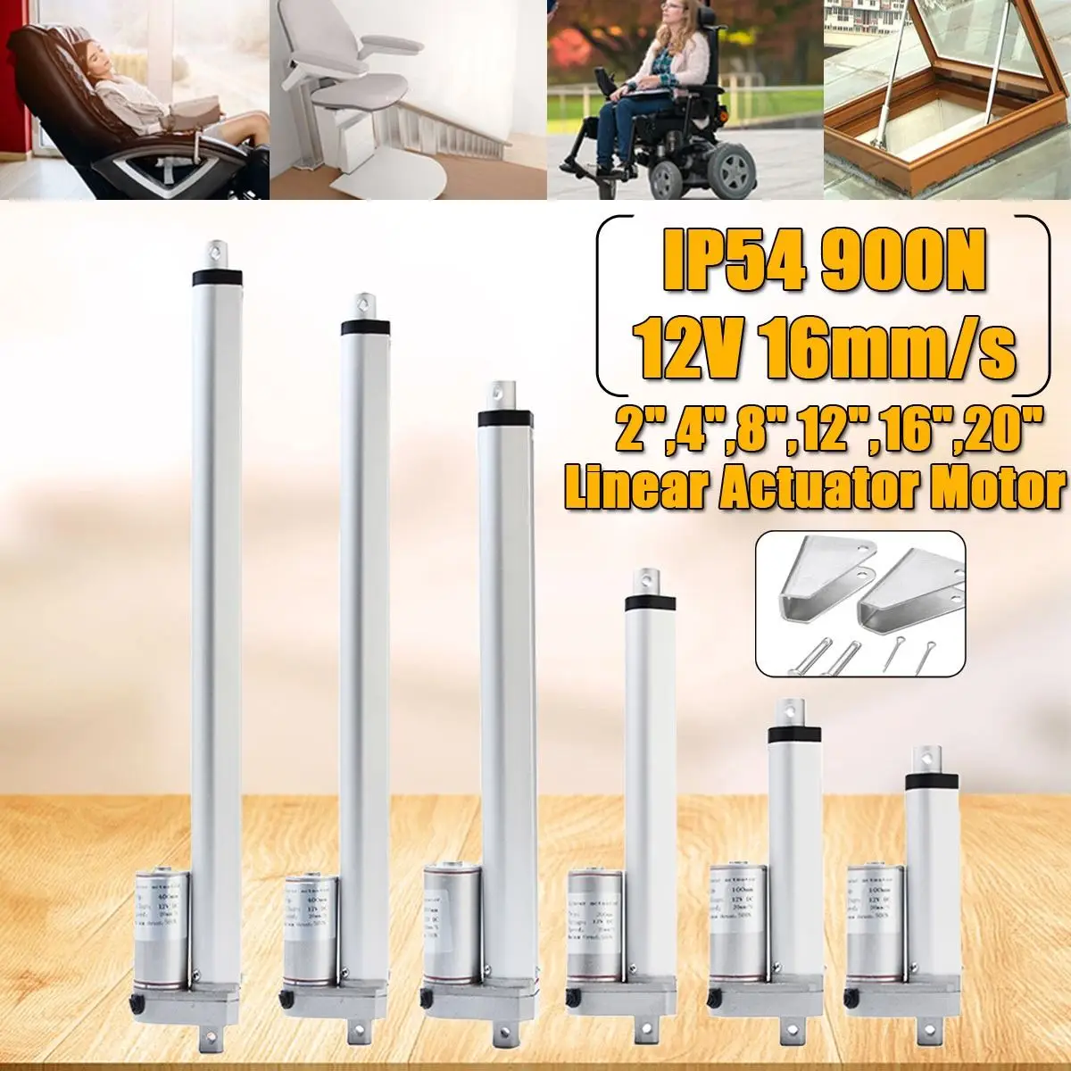 Металлический электрический линейный привод, 12 В постоянного тока, линейный двигатель с кронштейнами, ход движущегося расстояния 50 мм, 100 мм, 200 мм, 300 мм, 400 мм, 500 мм