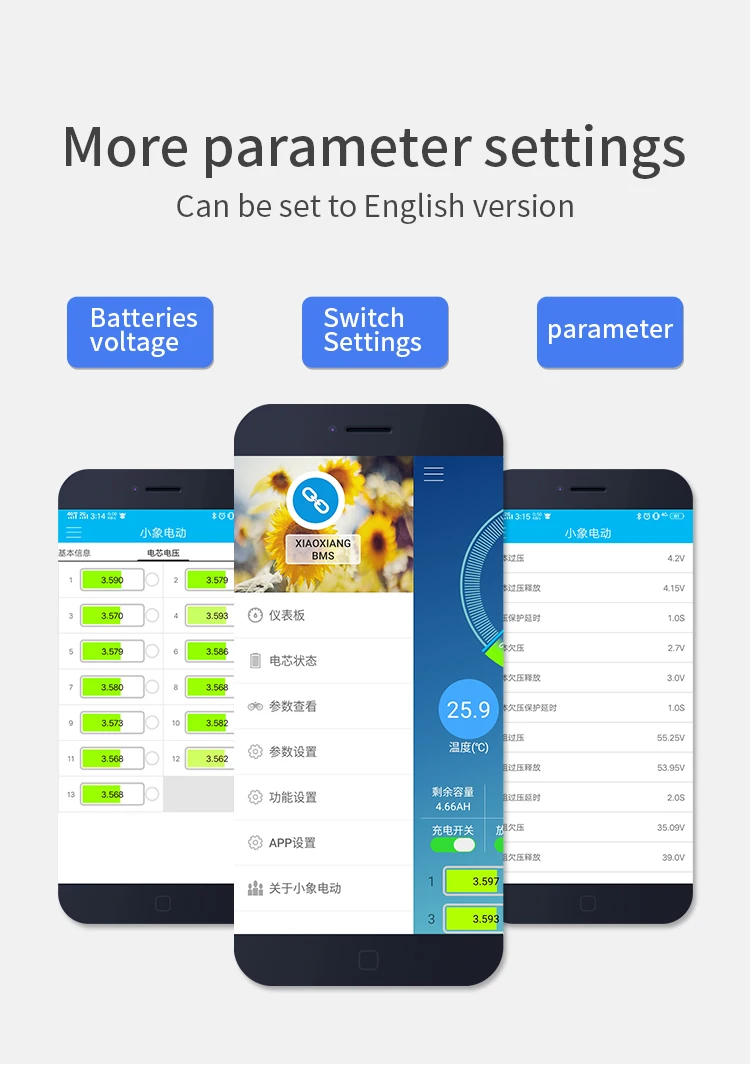 Приложение для телефона-Xiaoxiang BMSПараметры можно читать в любое время (версия на английском языке)