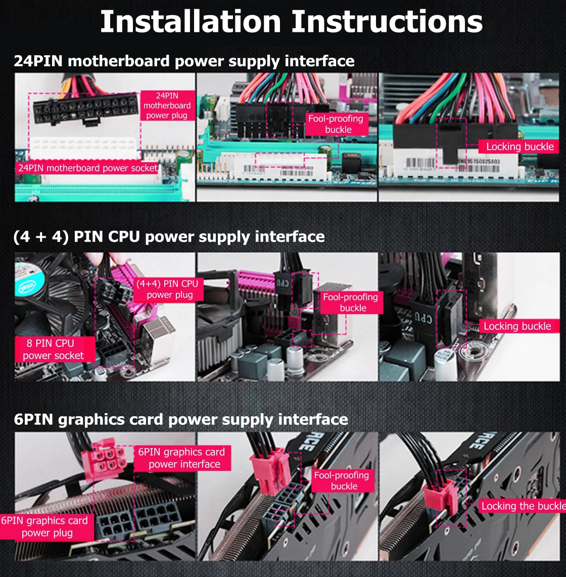 Блок питания для настольного компьютера, 600 Вт, бесшумный игровой блок питания, тихий вентилятор 120 мм, rgb, 24 контакта, 12 В, ATX, блок питания для настольного компьютера, для BTC