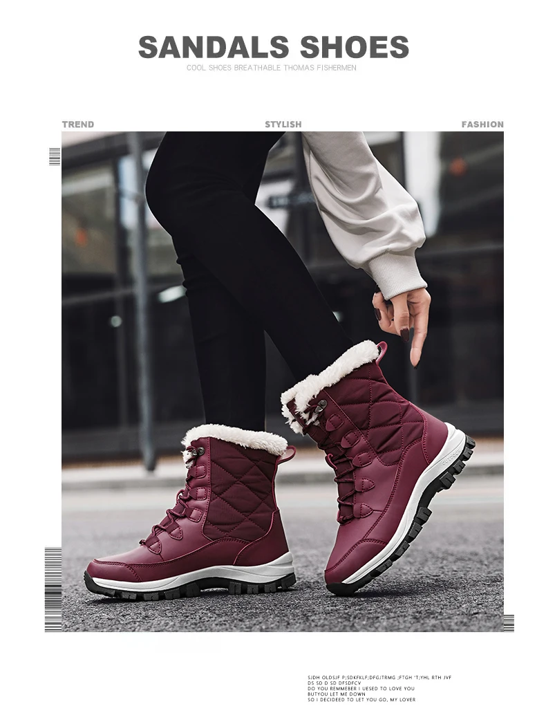 Женские ботинки 2021, плюшевые теплые зимние ботинки, водонепроница...