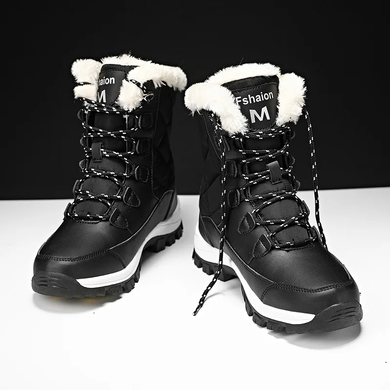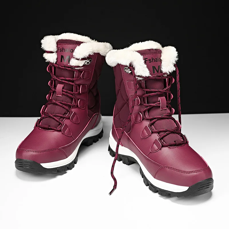 Женские походные ботинки, водонепроницаемая обувь из хлопка, женские зимние ботильоны на платформе, сохраняющие тепло зимние ботинки с толстым мехом на каблуке