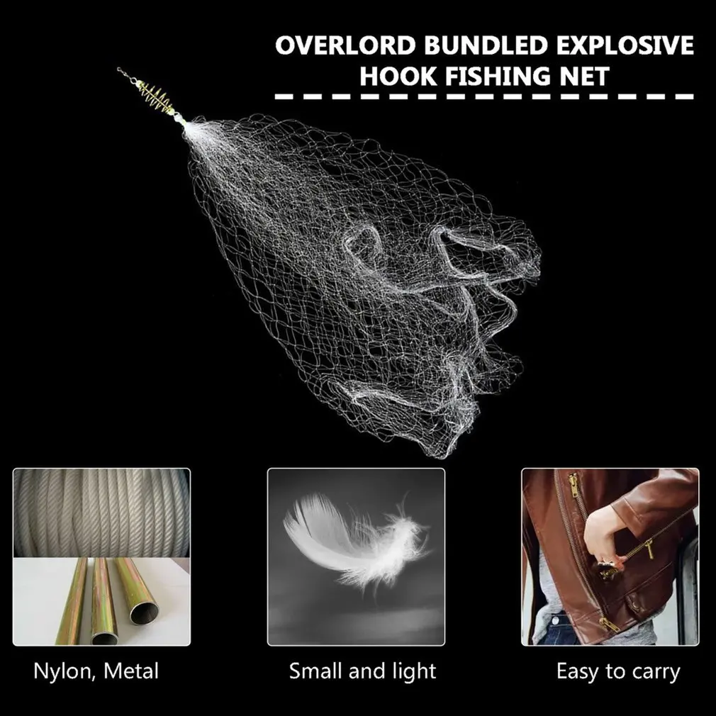 Особенности:1. Высокое качество: Изготовлен из высококачественного нейлона и нержавеющей стали, рыболовная сеть долговечна для длительного срока службы.2. Световой блок: светящийся блок с кольцом делает его твердым и простым в использовании.3. Хорошая эластичность: с хорошей эластичностью, пружинная сетка не легко ржавеет и не легко завязывается.4. Отличная идея подарка: это отличный подарок для любителей рыбалки.