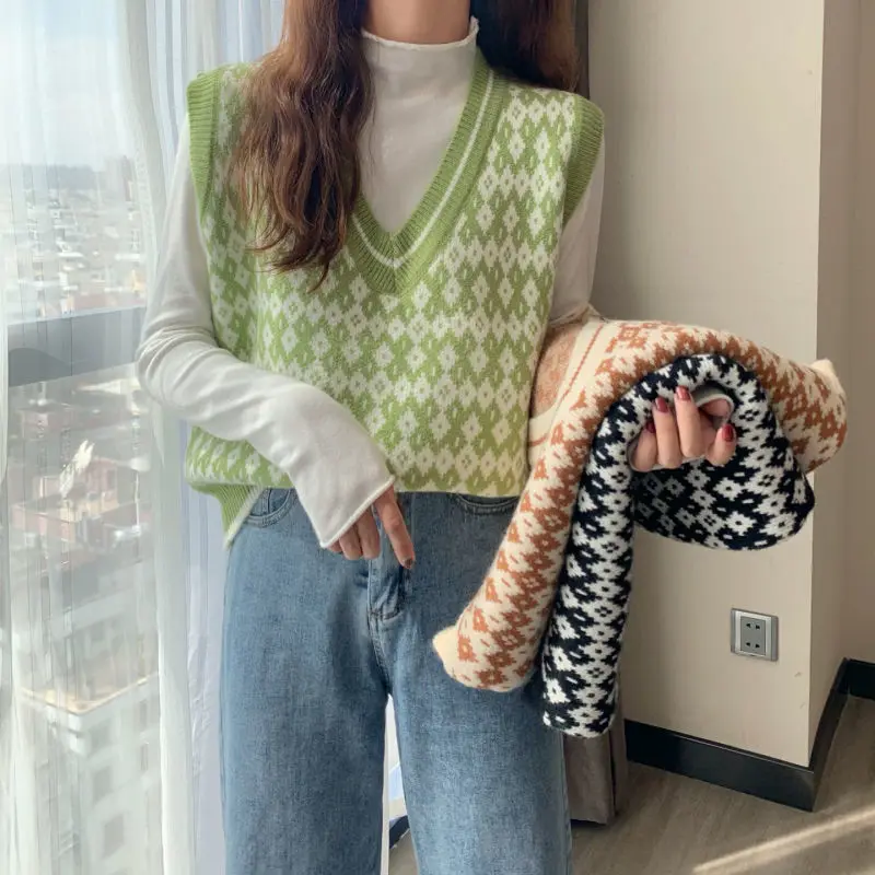 Женский свитер, жилет, Осенний вязаный жилет с узором, Женский Своб...