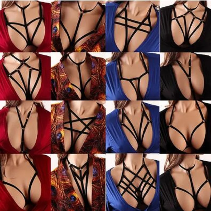 Женское нижнее белье в стиле Харадзюку, эротический фетиш на груди, подвязка для чулок, Эротический бюстгальтер-клетка в готическом стиле