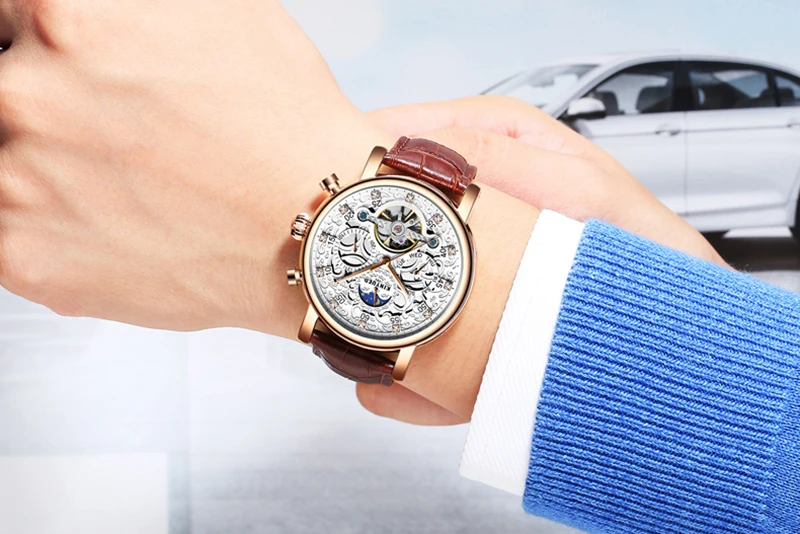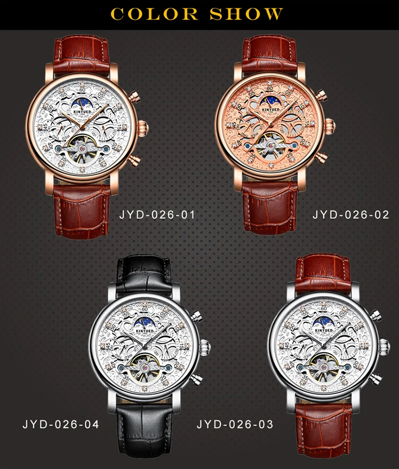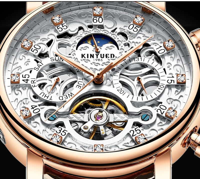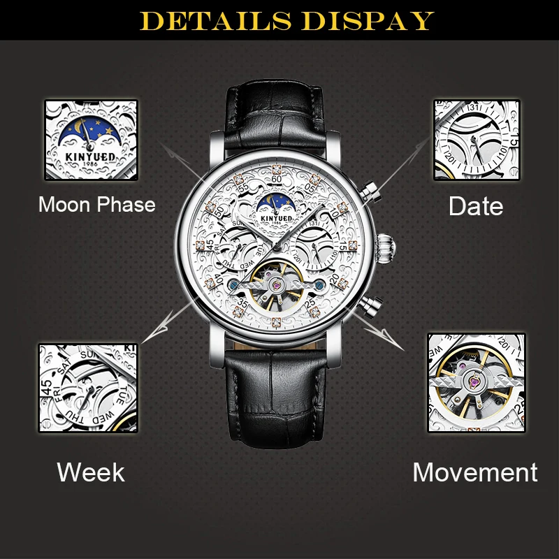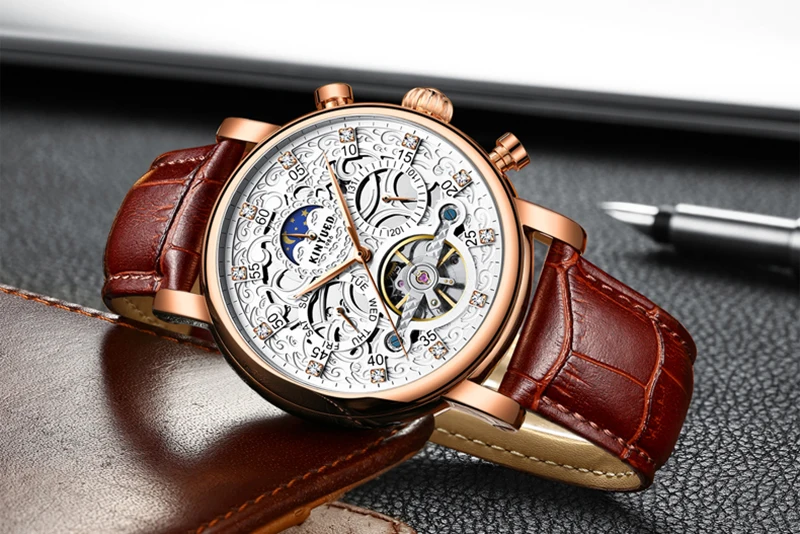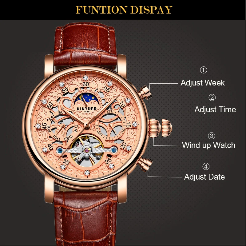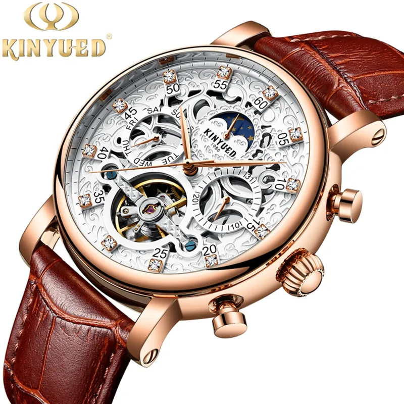 Часы наручные KINYUED Мужские механические, брендовые автоматические водонепроницаемые до 30 м