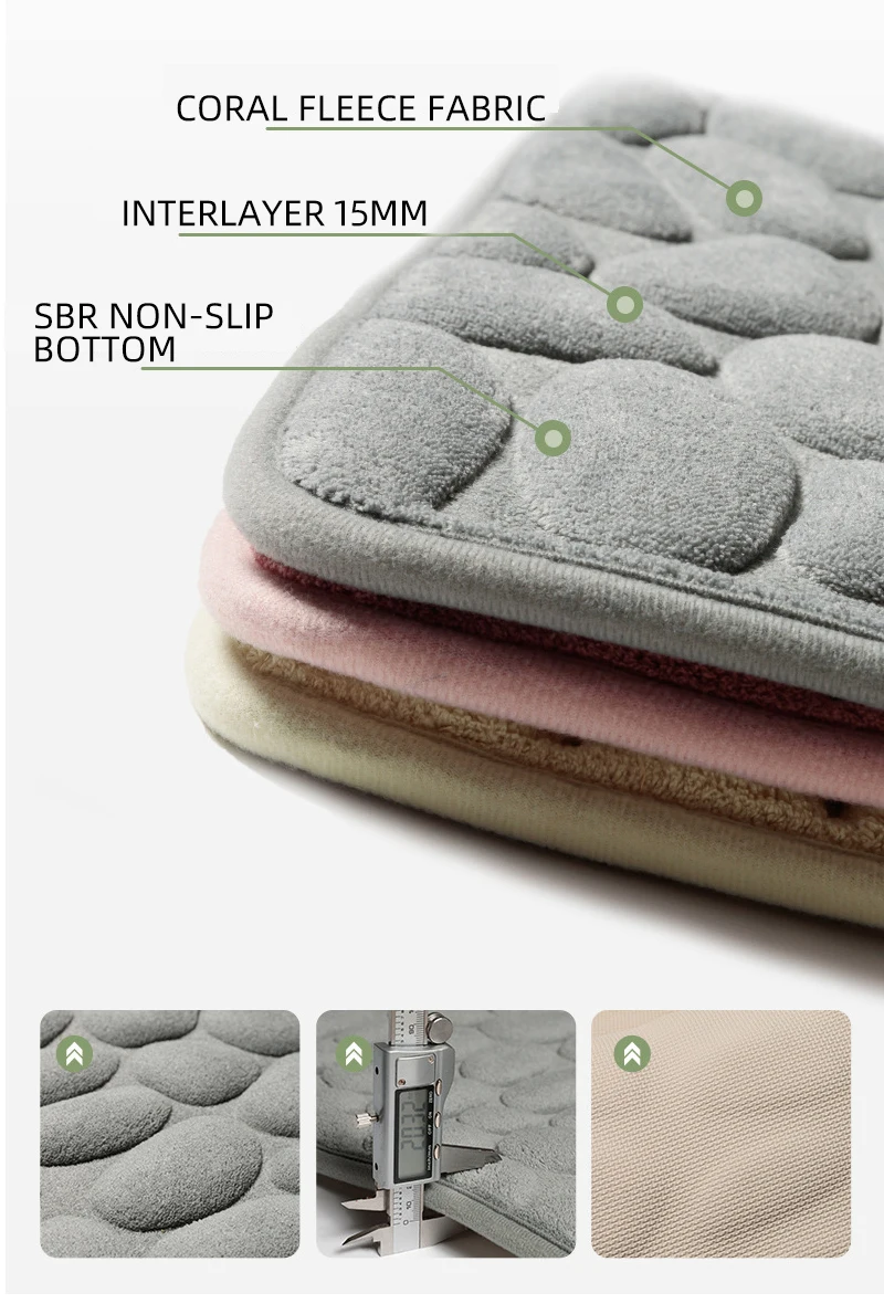 2. Супер эффективность поглощения воды: Напольный коврик обладает сильной водопоглощающей способностью. Когда вы наступаете на ноги, вы можете немедленно высушить ноги, защитить ваши ноги от холодной земли и предотвратить промокание пола.