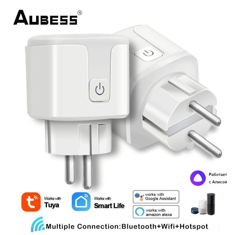 Беспроводная розетка Aubess с евровилкой, смарт-розетка с голосовым управлением, Wi-Fi, работает с Alexa Google Home Alice