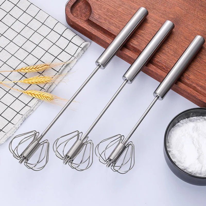 Полуавтоматический взбиватель яиц из 304 нержавеющей стали, ручной миксер для взбивания яиц, самоповорачивающаяся мешалка для яиц, кухонные аксессуары, инструменты для яиц