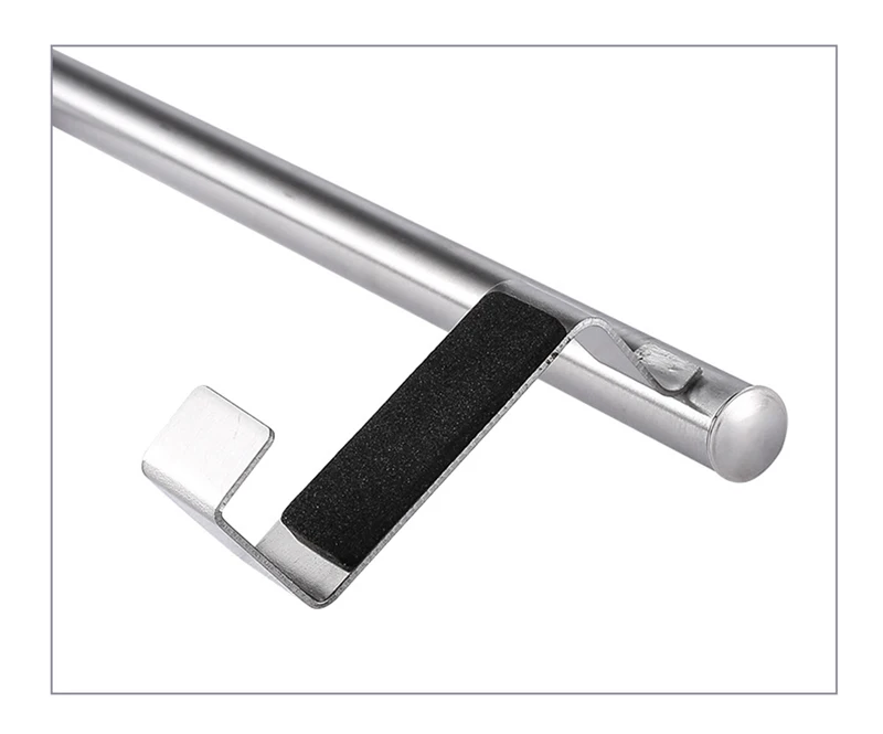 1. Эта вешалка для полотенец спроектирована в качестве вешалки на двери, легко и удобно установить.2. Держатель для полотенец изготовлен из нержавеющей стали, которая устойчива к ржавчине и коррозии.3. Стойка подходит для кухни, ванной комнаты, отеля и так далее, имеет большой спектр применения.4. Он подходит для дверцы шкафа, толщина которых составляет менее 1,9 см и дверной зазор, общий вес которых не превышает 2 мм.