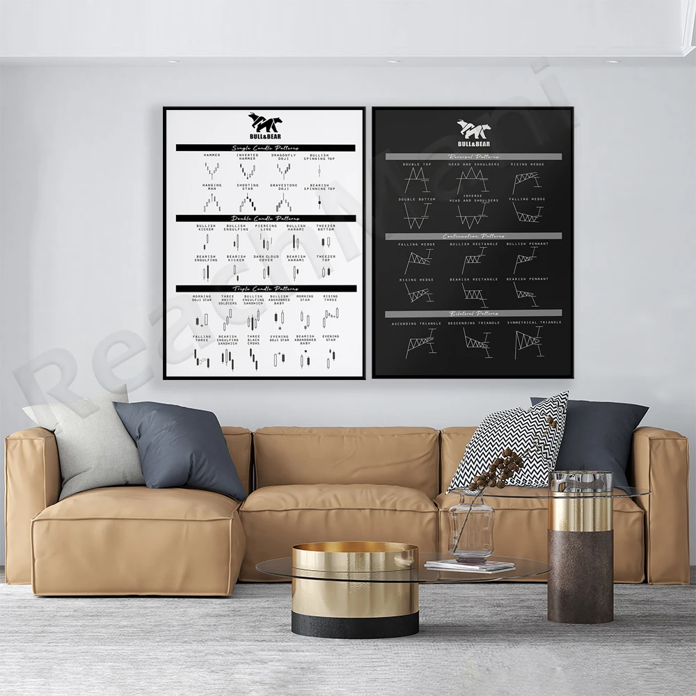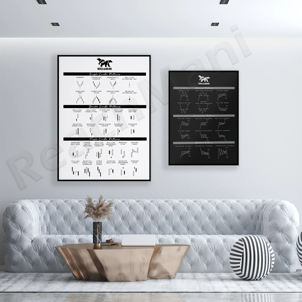 Технический анализ, схемы и подсвечники для трейдеров, плакаты Крипто-монета, Форекс, стена-улица, стоковые рынки, настенное искусство