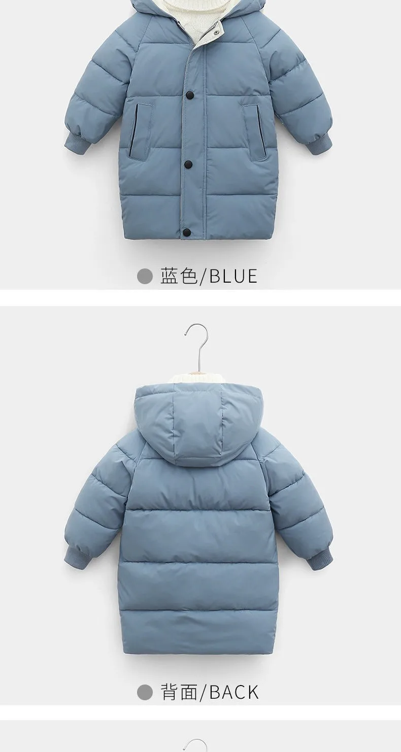Пуховик длинный детский из чистого хлопка, утепленный, зимний, 2022
