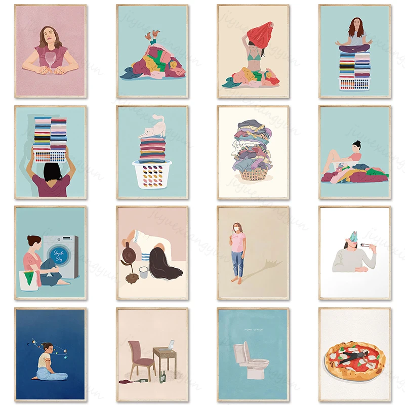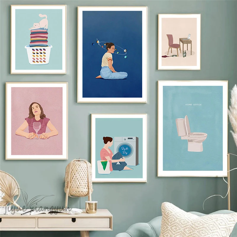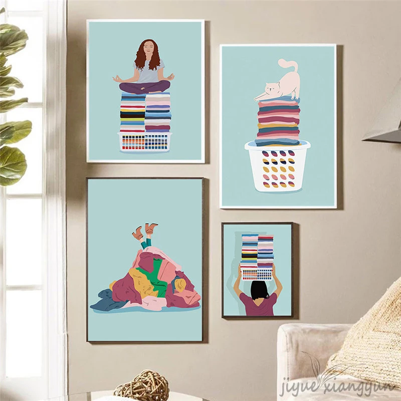 Постер с изображением девушки для ежедневной стирки одежды для чистки комнаты для готовки еды Скандинавская абстрактная Настенная картина на холсте для домашнего декора комнаты
