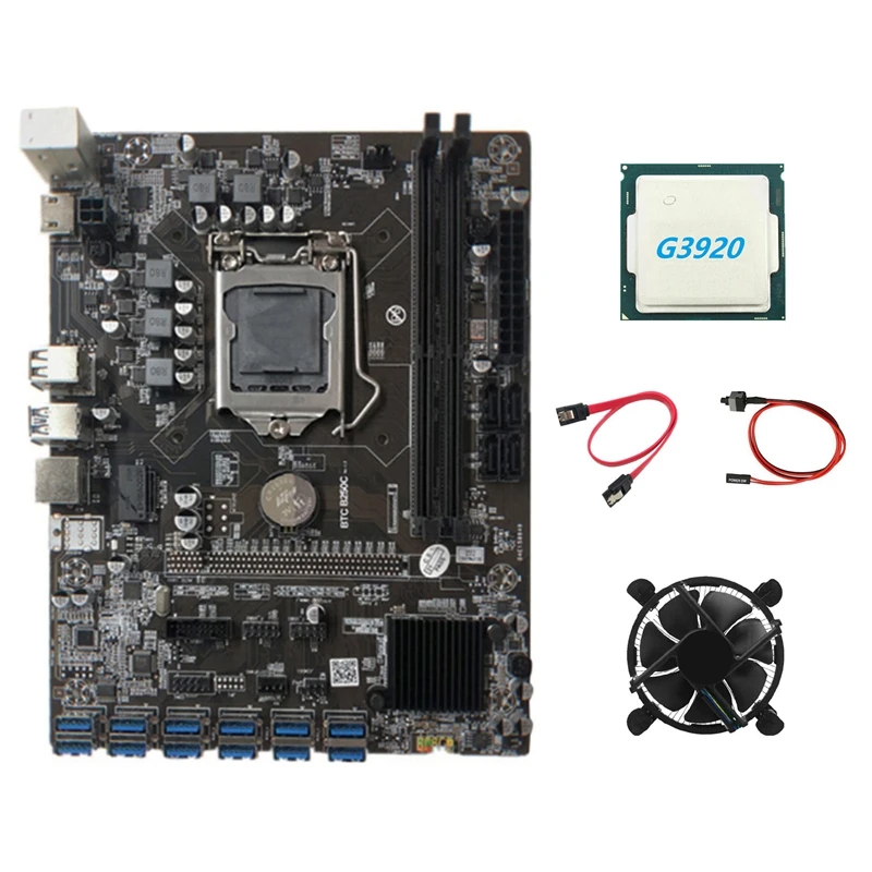 B250C BTC Mining материнская плата с G3920 или G3930 ЦП + вентилятор + кабель SATA + кабель переключения 12XPCIE до USB3.0 слот GPU поддержка DDR4 DIM