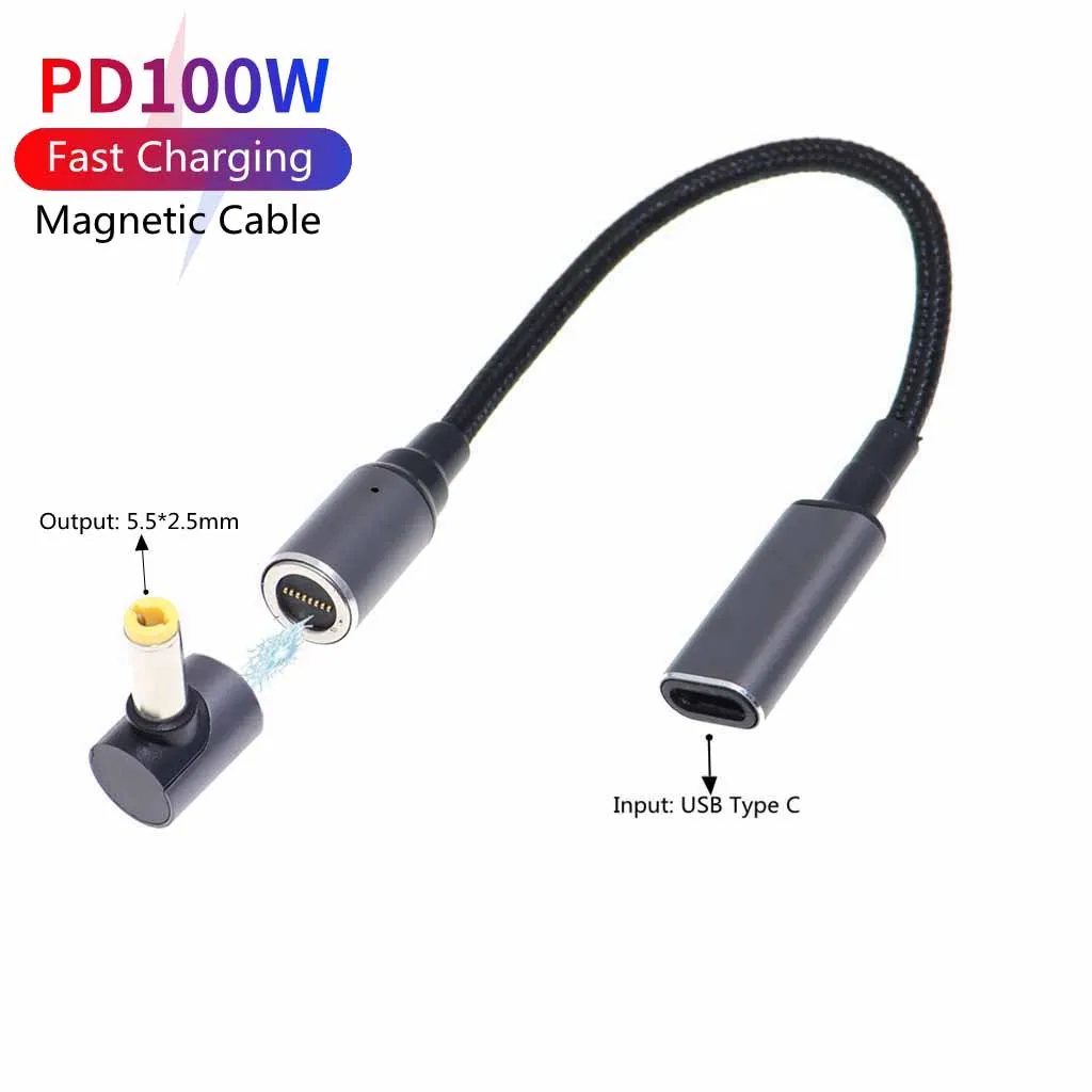 100W магнитное Тип Кабеля C Female до 5,5x2,5 мм штекер переходник преобразователь питания ноутбука USB провод для быстрой зарядки для ноутбука Зарядное устройство