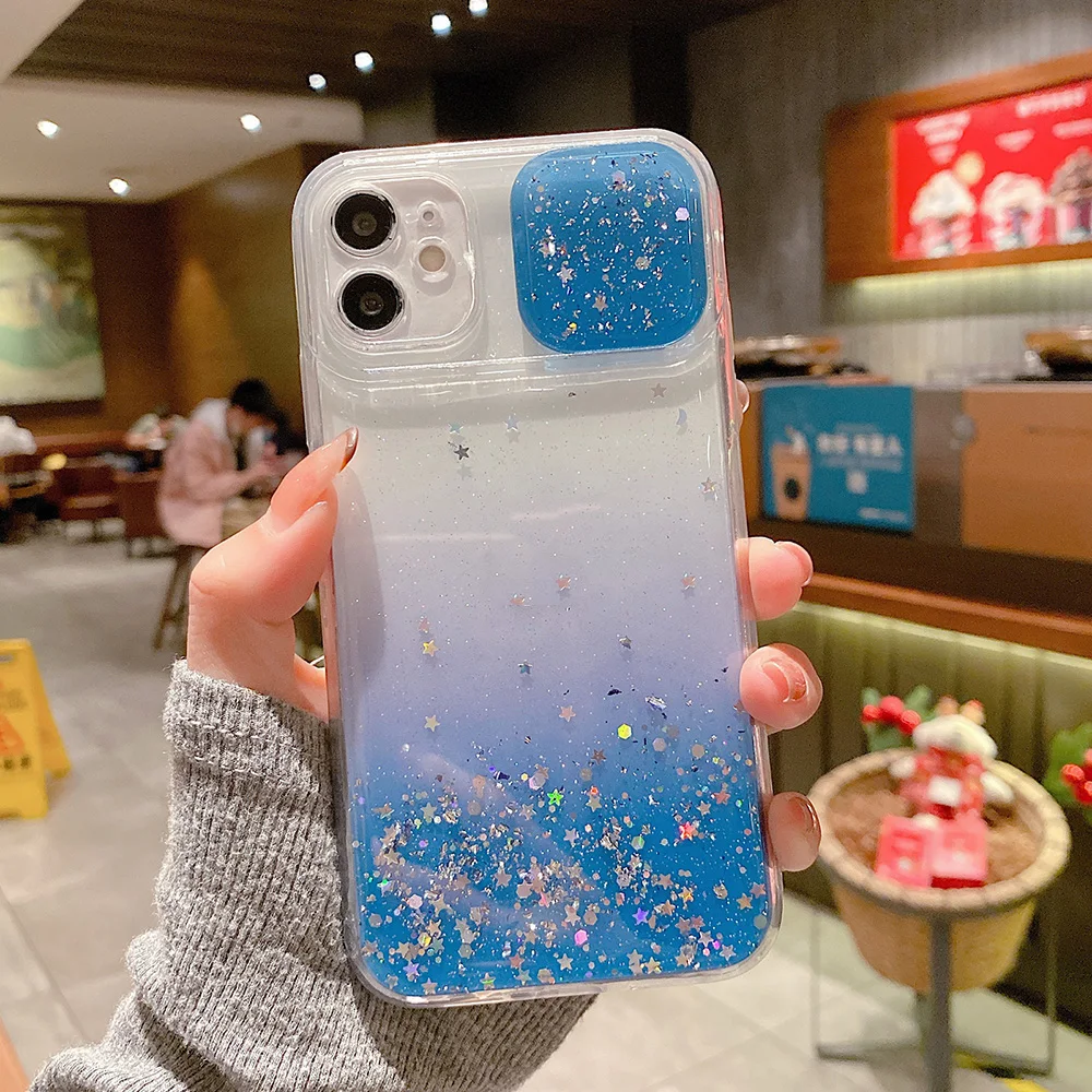 Модный прозрачный чехол с градиентом и блестками для iPhone 13, 12,...