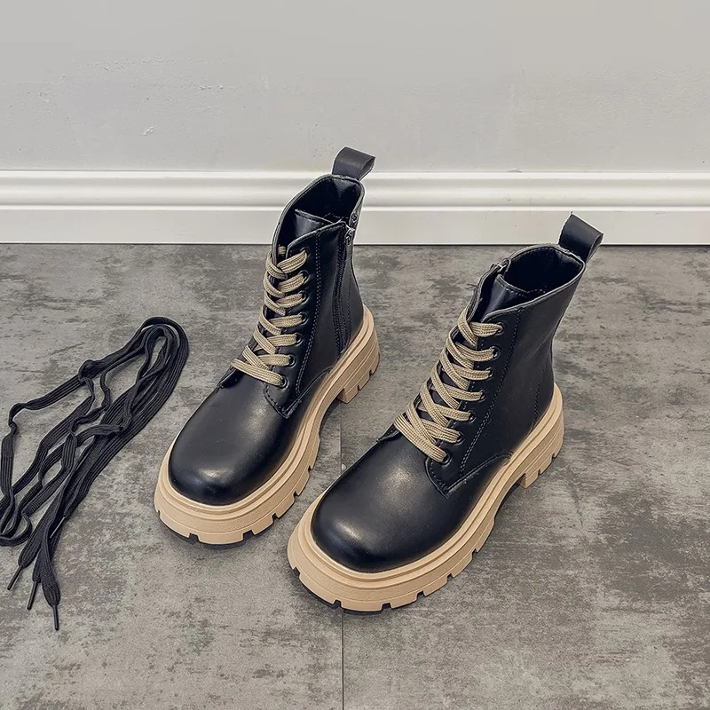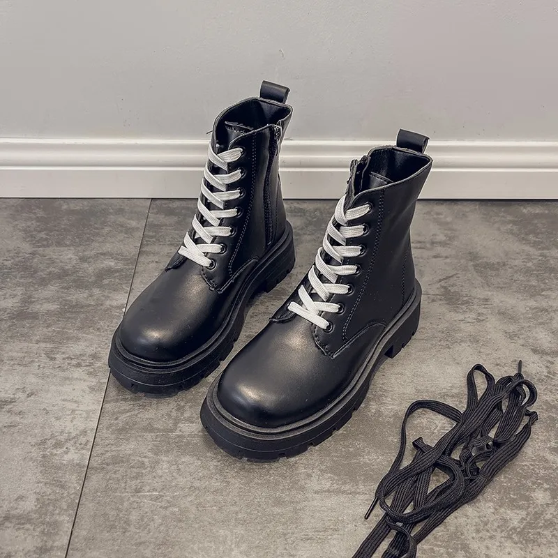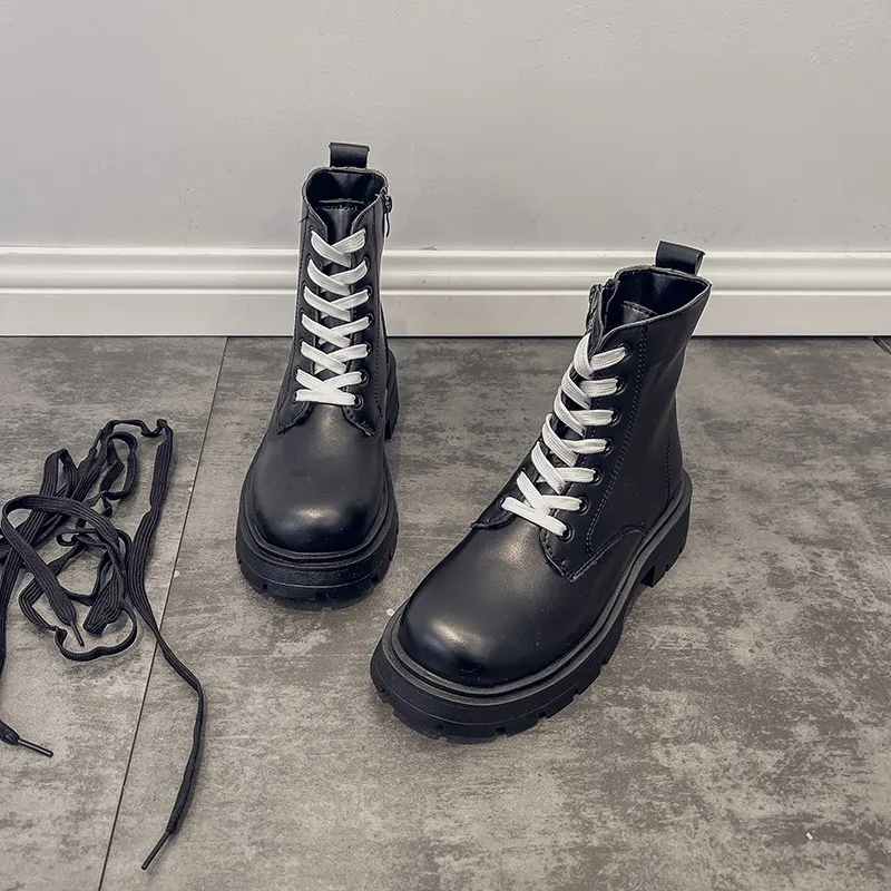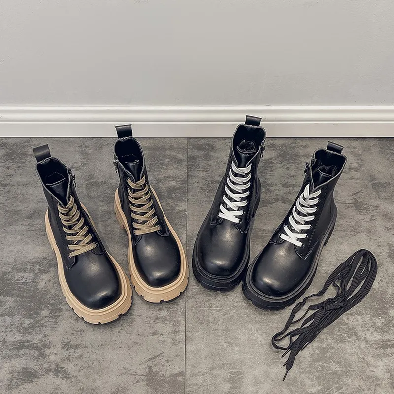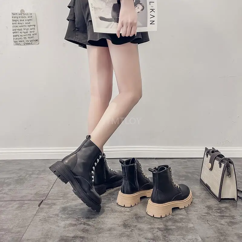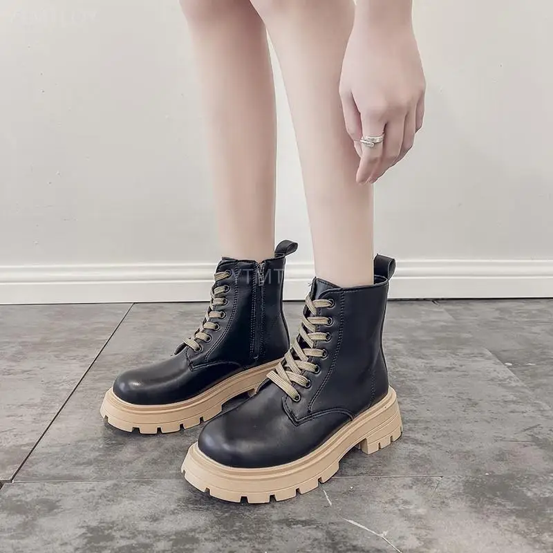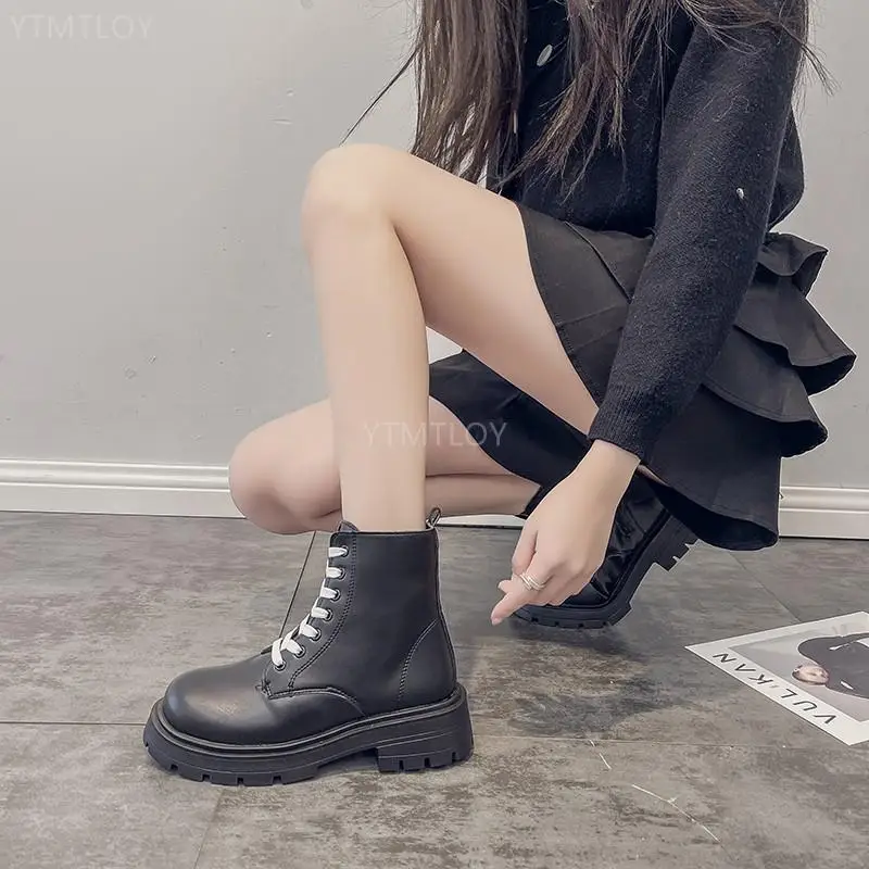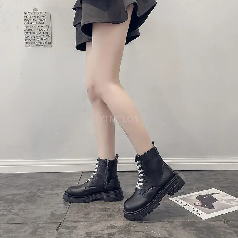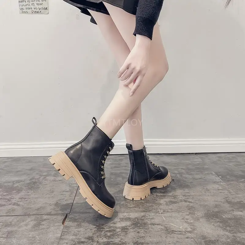 Женские кожаные ботинки на толстой подошве, Новинка осени 2022, дышащая обувь в британском стиле, короткие пикантные ботинки с круглым носком Ytmtloy