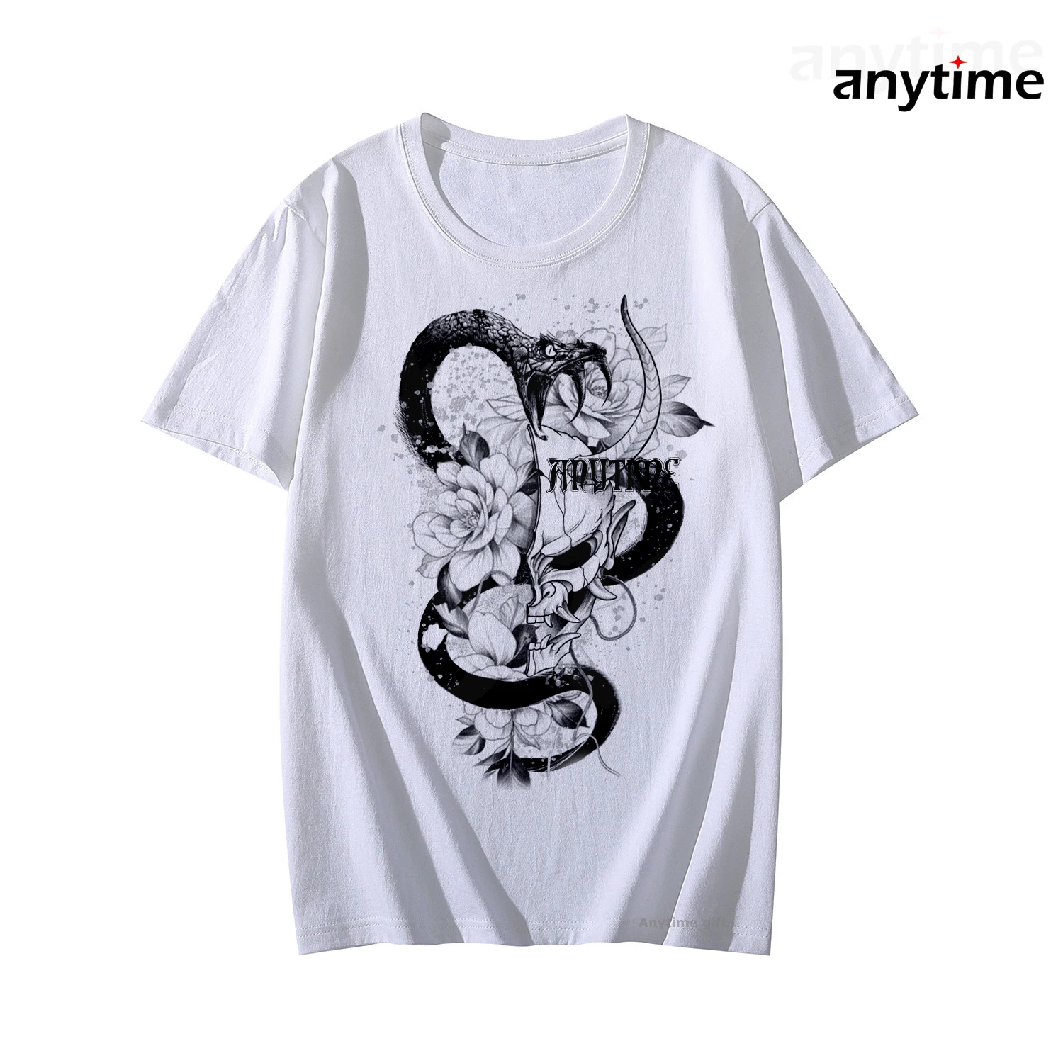 Футболка в готическом стиле для мужчин и женщин, Повседневная футболка с принтом змеи и цветов, уличная одежда в стиле Харадзюку, 2022